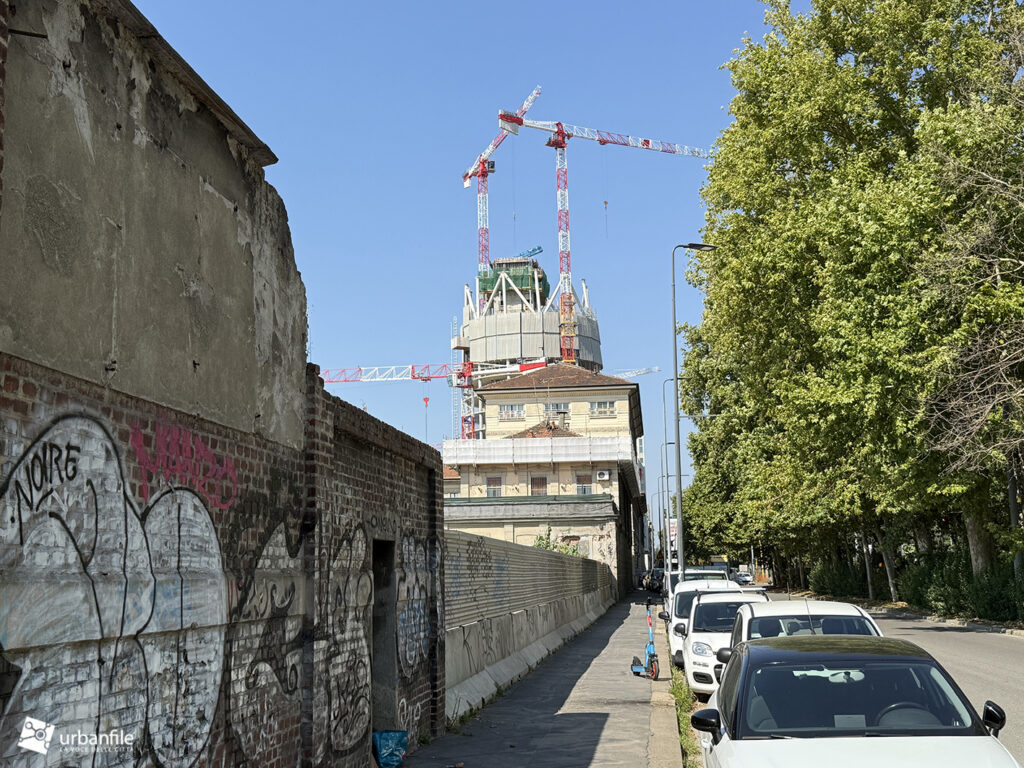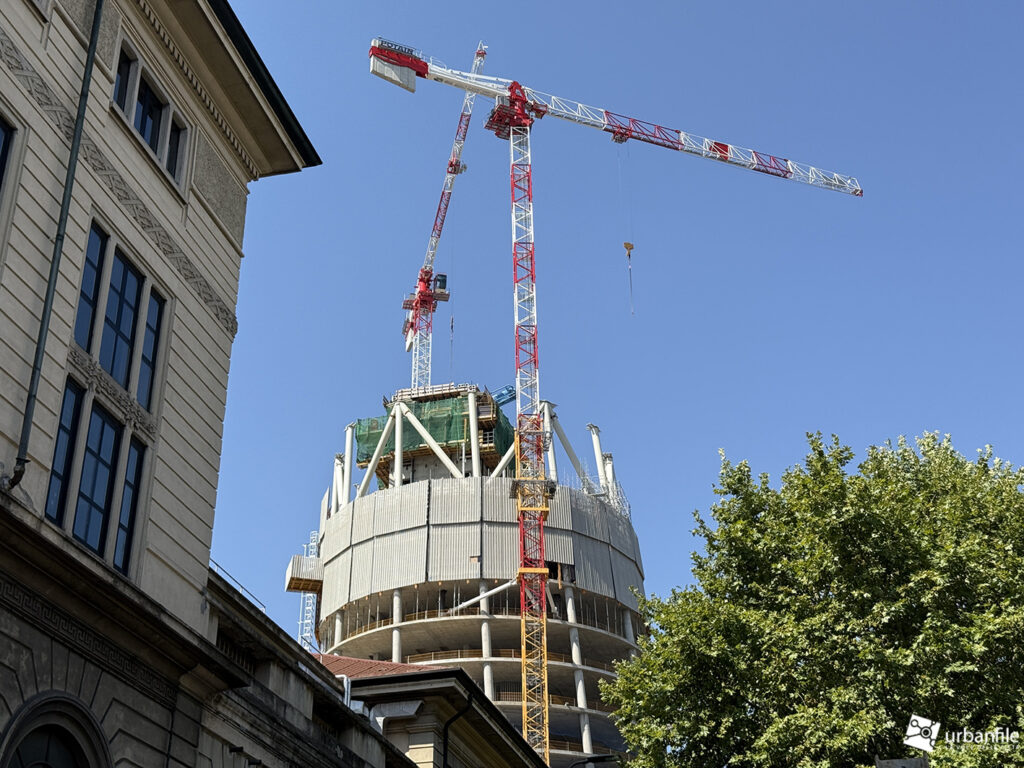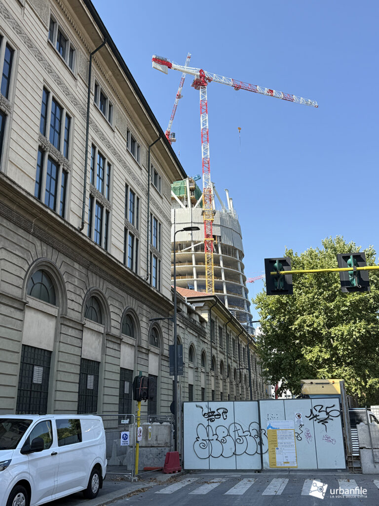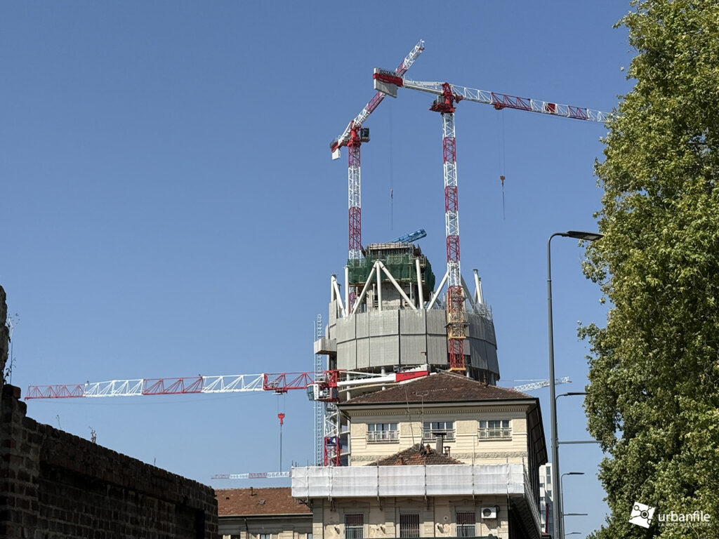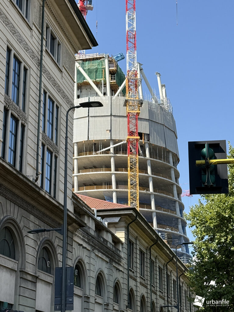 In questi giorni di metà mese è stata alzata la seconda gru per consentire di proseguire col cantiere. La torre inizia a vedersi sopra i palazzi, anche da lontano.