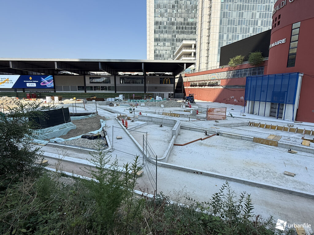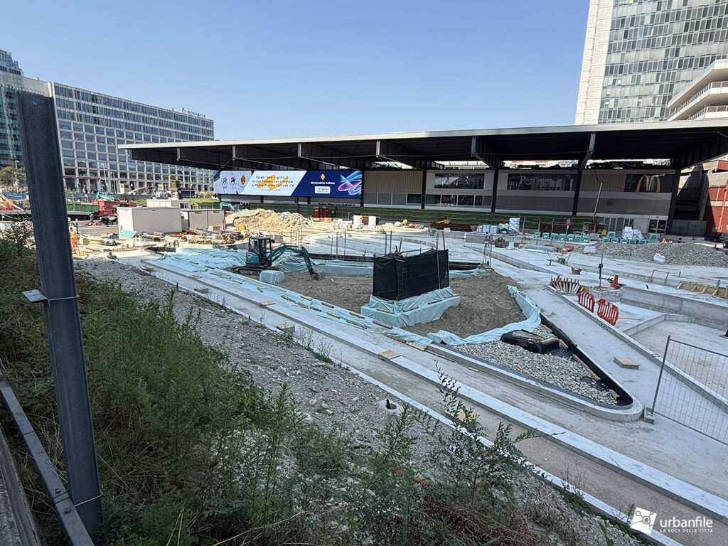 Aggiornamento di agosto 2025 dal cantiere per la riqualificazione di piazza Sigmund Freud, lo spazio urbano antistante la stazione di Milano Porta Garibaldi, una delle piazze più brutte della città da sempre, anche perché era un semplice parcheggio.