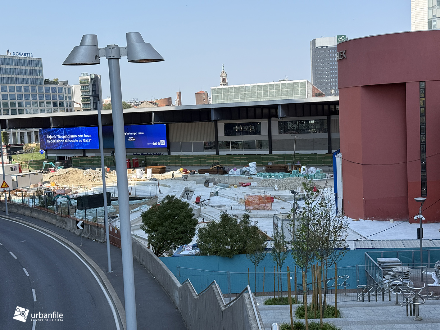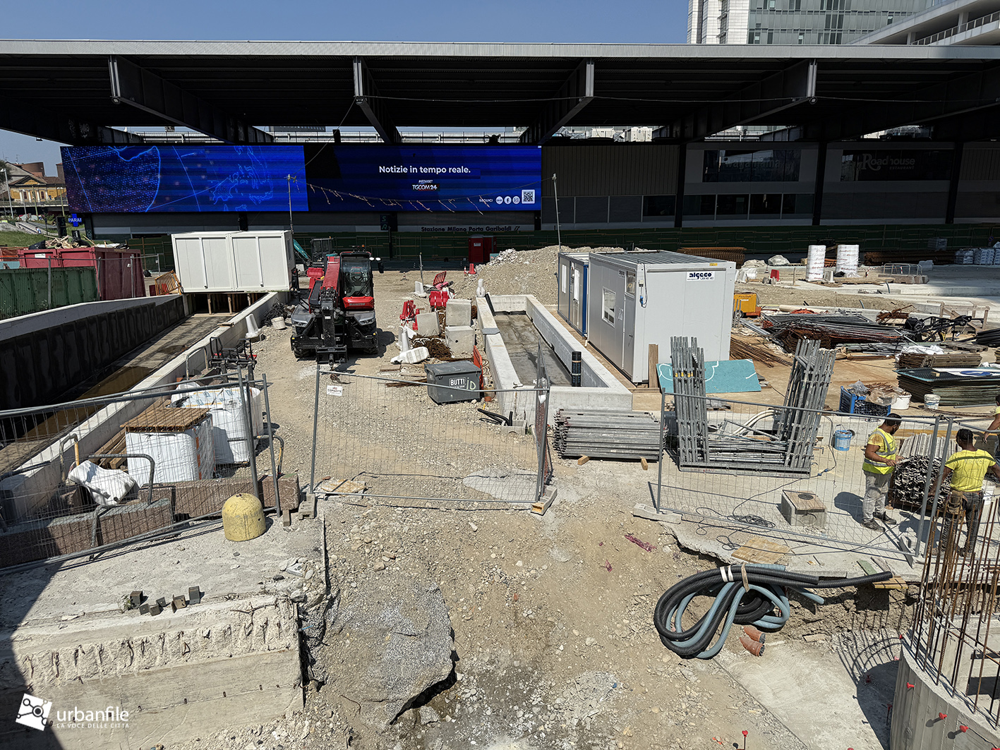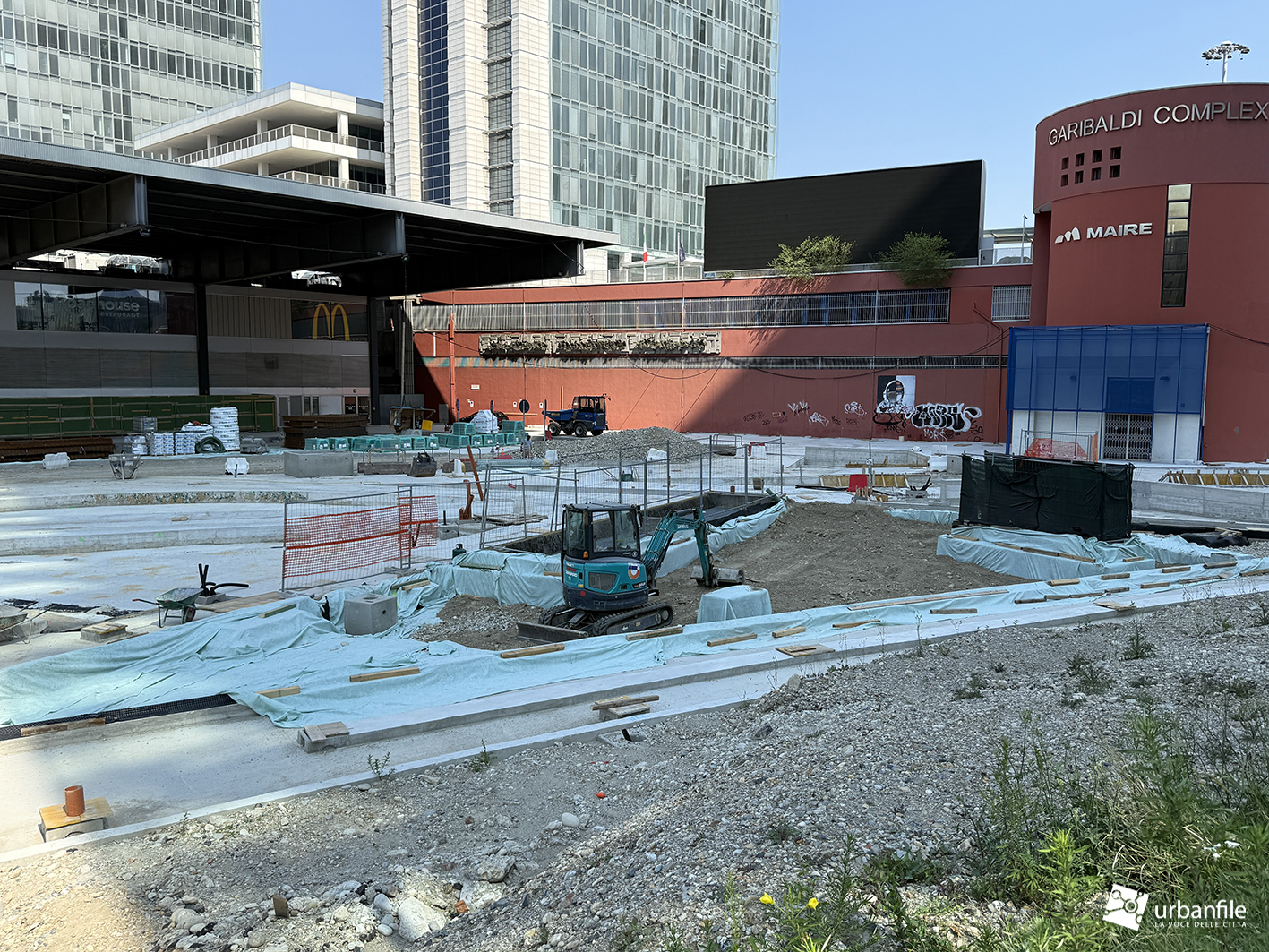 Aggiornamento di agosto 2025 dal cantiere per la riqualificazione di piazza Sigmund Freud, lo spazio urbano antistante la stazione di Milano Porta Garibaldi, una delle piazze più brutte della città da sempre, anche perché era un semplice parcheggio.
