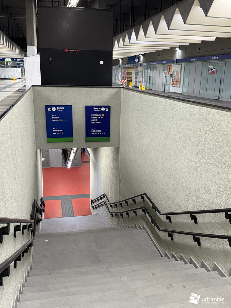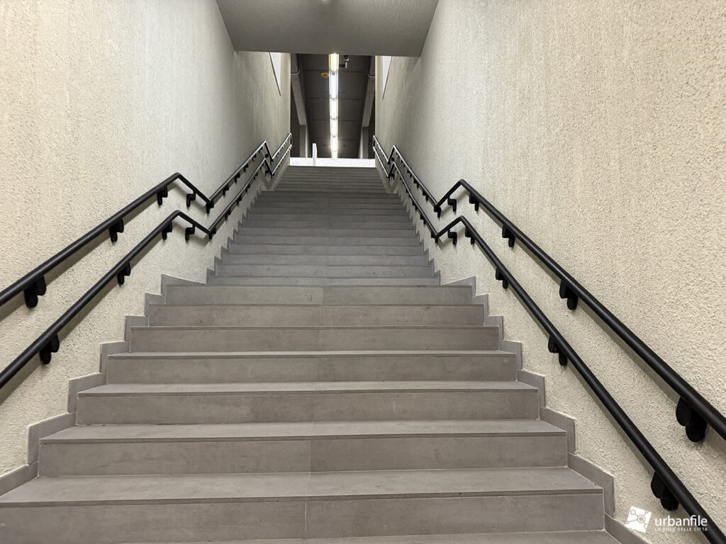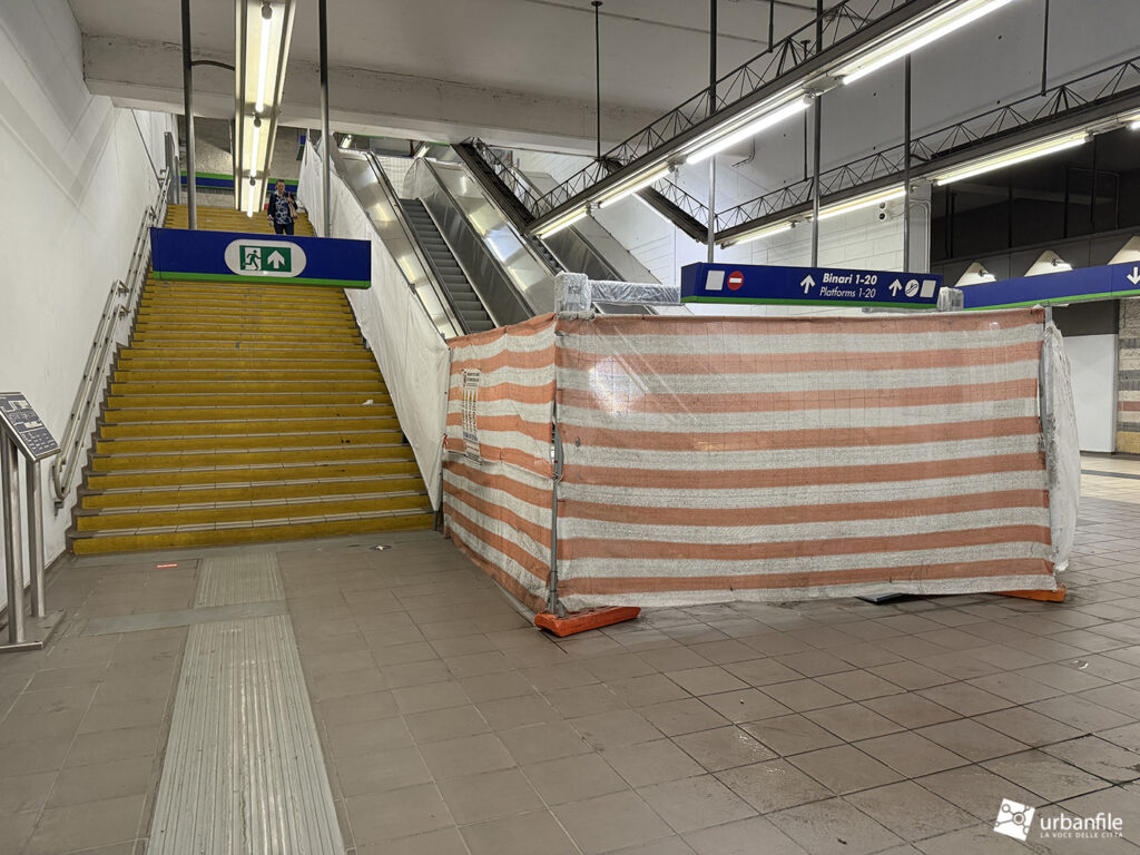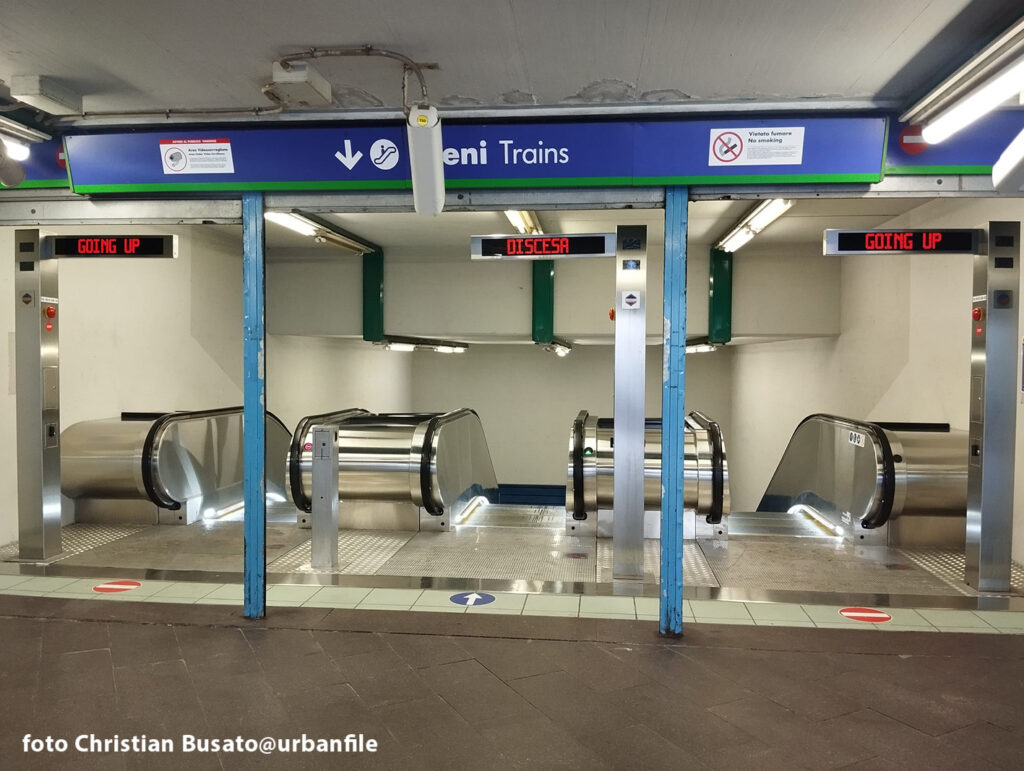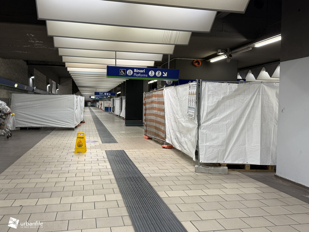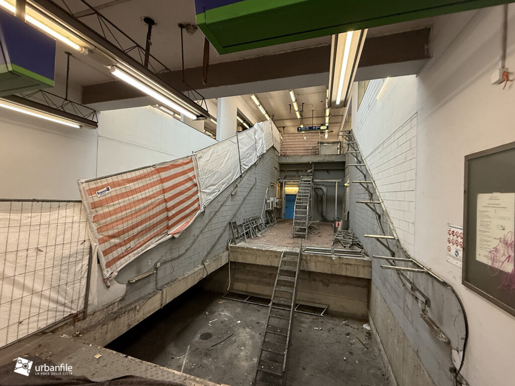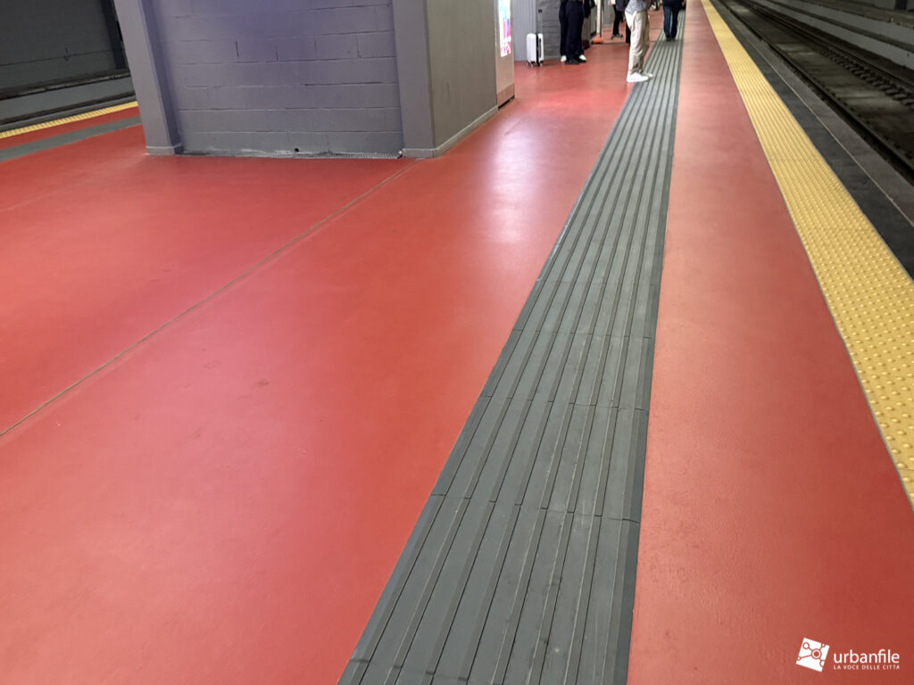 Oltre agli impianti tecnici, l’intervento ha interessato anche l’aspetto estetico della stazione: nuova pavimentazione in gomma industriale color rosso vermiglio, tinteggiatura grigia che ha ricoperto le mattonelle colorate originarie, segnaletica aggiornata e nuovi pannelli informativi. Sono state rinnovate anche le scale tradizionali, mentre restano da completare le scale mobili e l’ampio mezzanino posto tra i tornelli e le banchine, ancora invariato. Nel complesso, però, il risultato appare già significativo e restituisce alla stazione un aspetto più moderno e ordinato.