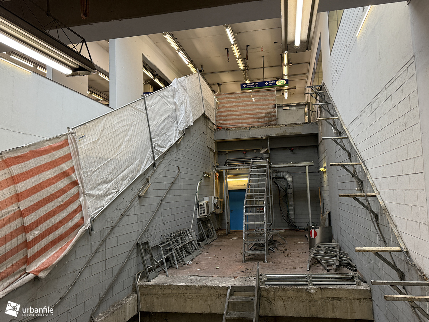 Oltre agli impianti tecnici, l’intervento ha interessato anche l’aspetto estetico della stazione: nuova pavimentazione in gomma industriale color rosso vermiglio, tinteggiatura grigia che ha ricoperto le mattonelle colorate originarie, segnaletica aggiornata e nuovi pannelli informativi. Sono state rinnovate anche le scale tradizionali, mentre restano da completare le scale mobili e l’ampio mezzanino posto tra i tornelli e le banchine, ancora invariato. Nel complesso, però, il risultato appare già significativo e restituisce alla stazione un aspetto più moderno e ordinato.
