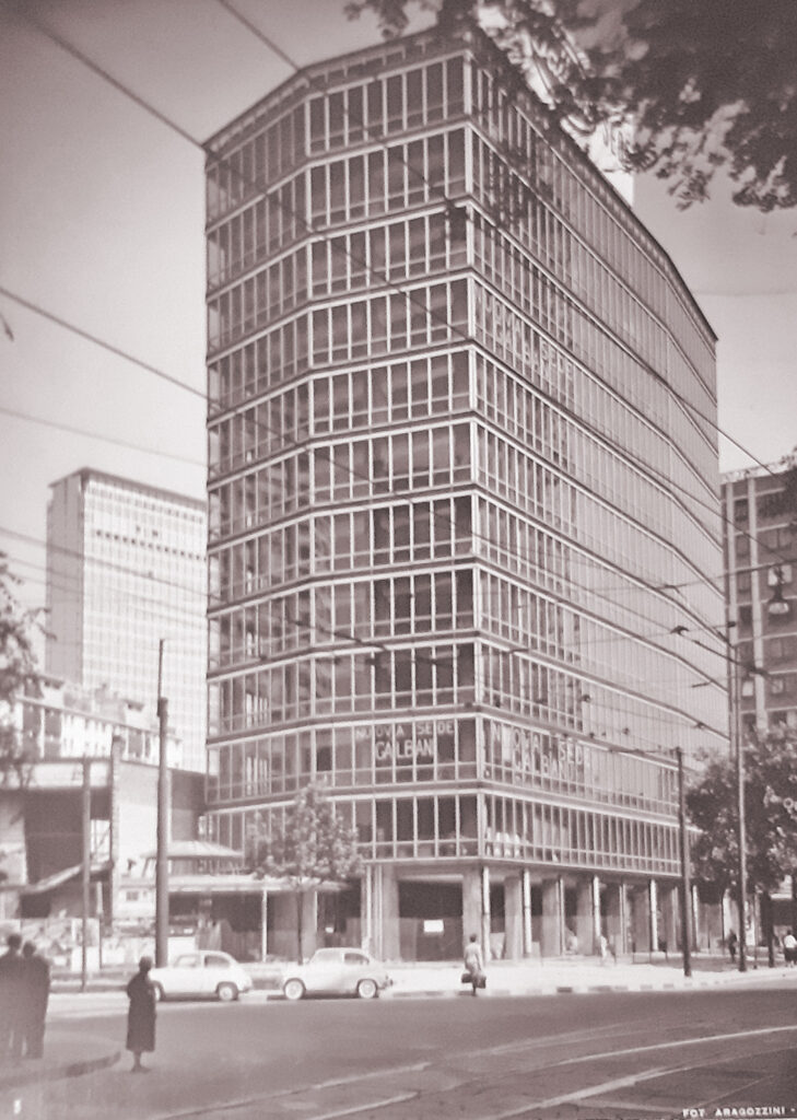 In origine sede di rappresentanza della Galbani S.p.A., che trasferì i propri uffici da Melzo a Milano nel 1960, l’immobile sorge di fronte al Grattacielo Pirelli di Gio Ponti, altro capolavoro della collaborazione con Nervi.