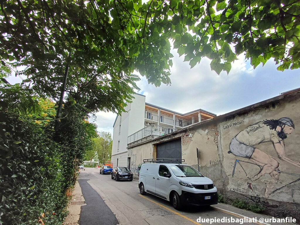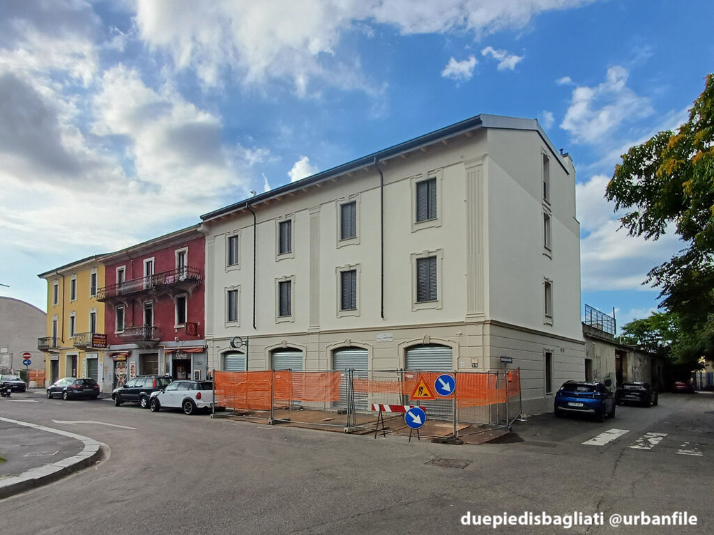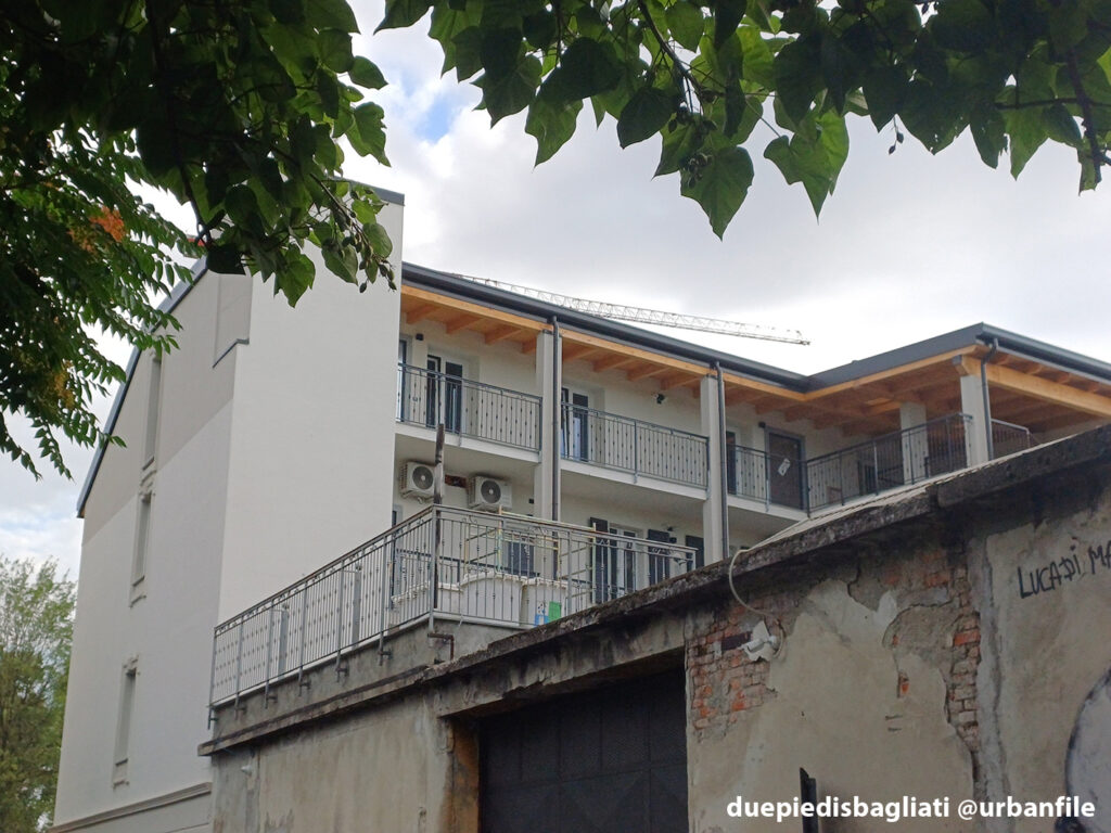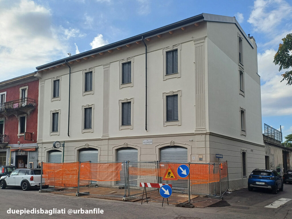 Da qualche settimana si sono conclusi i lavori di riqualificazione e ampliamento – con il consueto sopralzo consentito – di una piccola palazzina dei primi del Novecento. L’edificio, costruito originariamente come abitazione per gli operai delle aree della Goccia in Bovisa/Villapizzone, si affaccia su una delle tante piazze senza nome, nel punto in cui via Raffaele Lambruschini incrocia via Giampietrino e via privata Codigoro.