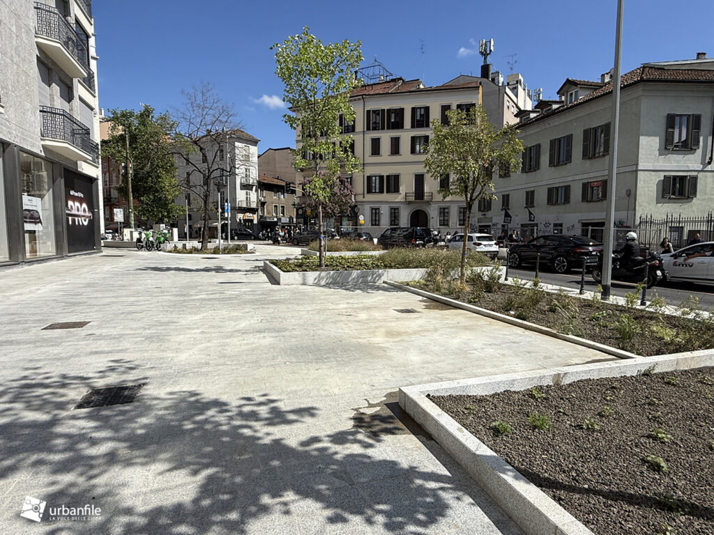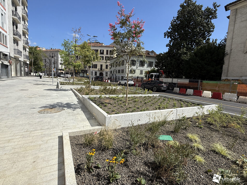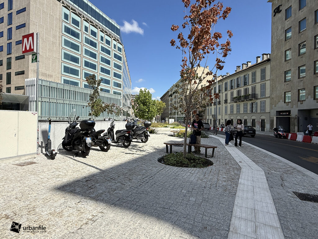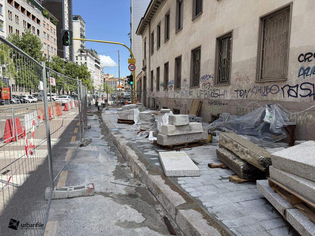 Aggiornamento fotografico dal cantiere per il ripristino dell’arredo urbano dopo la rimozione dei cantieri per la realizzazione della stazione M4 Santa Sofia, aperta dall’ottobre 2024.