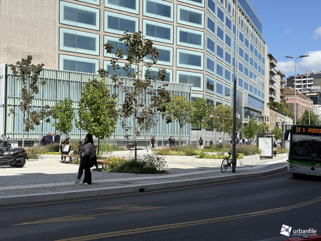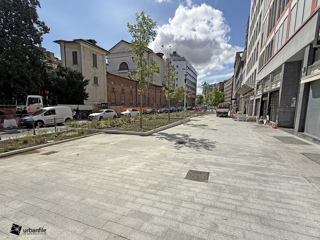 Proseguiamo sino al Corso di Porta Romana, dove il cantiere pare essere giunto a buon punto. Anche qui, sempre secondo noi, l’abbondanza di cemento e pietra supera un po’ troppo l’area che poteva rimanere a verde.