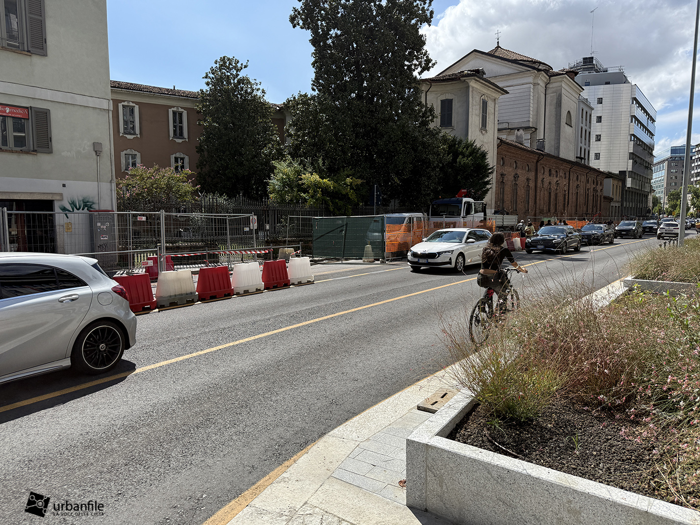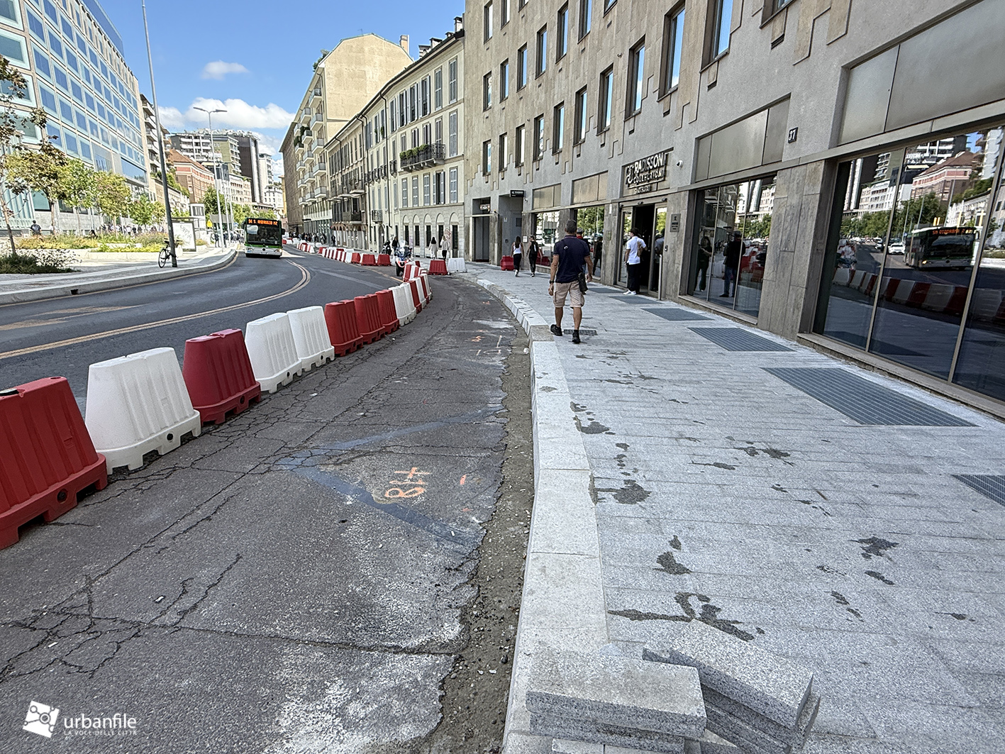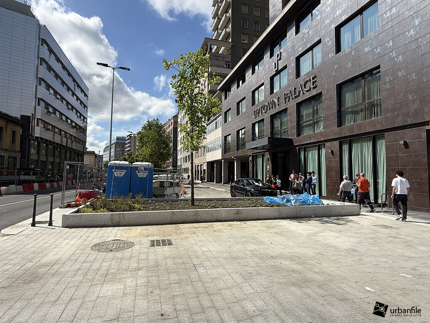 Proseguiamo sino al Corso di Porta Romana, dove il cantiere pare essere giunto a buon punto. Anche qui, sempre secondo noi, l’abbondanza di cemento e pietra supera un po’ troppo l’area che poteva rimanere a verde.