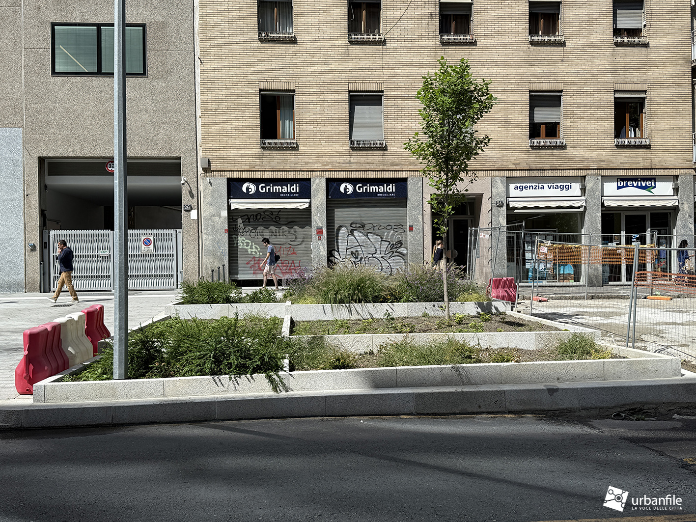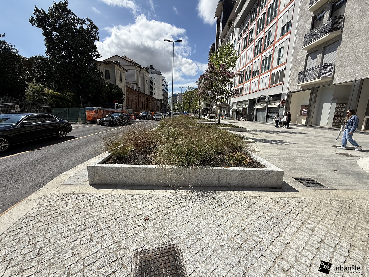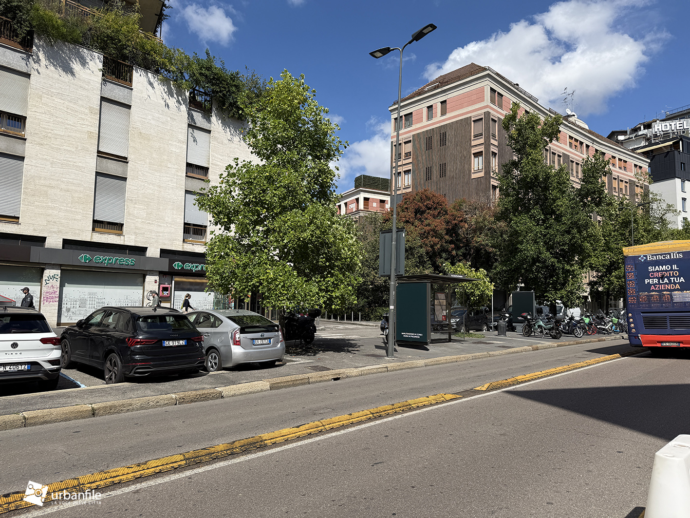 Proseguiamo sino al Corso di Porta Romana, dove il cantiere pare essere giunto a buon punto. Anche qui, sempre secondo noi, l’abbondanza di cemento e pietra supera un po’ troppo l’area che poteva rimanere a verde.