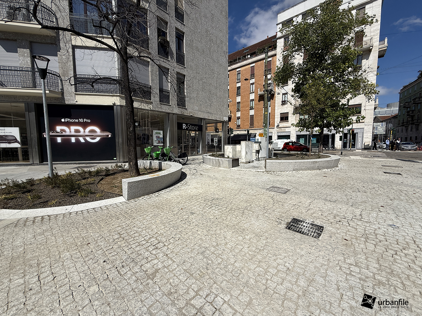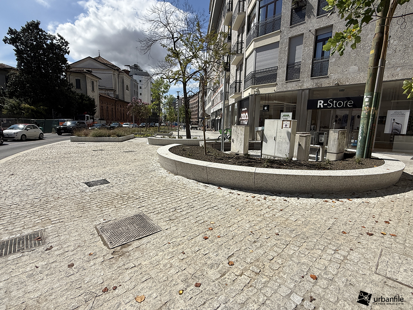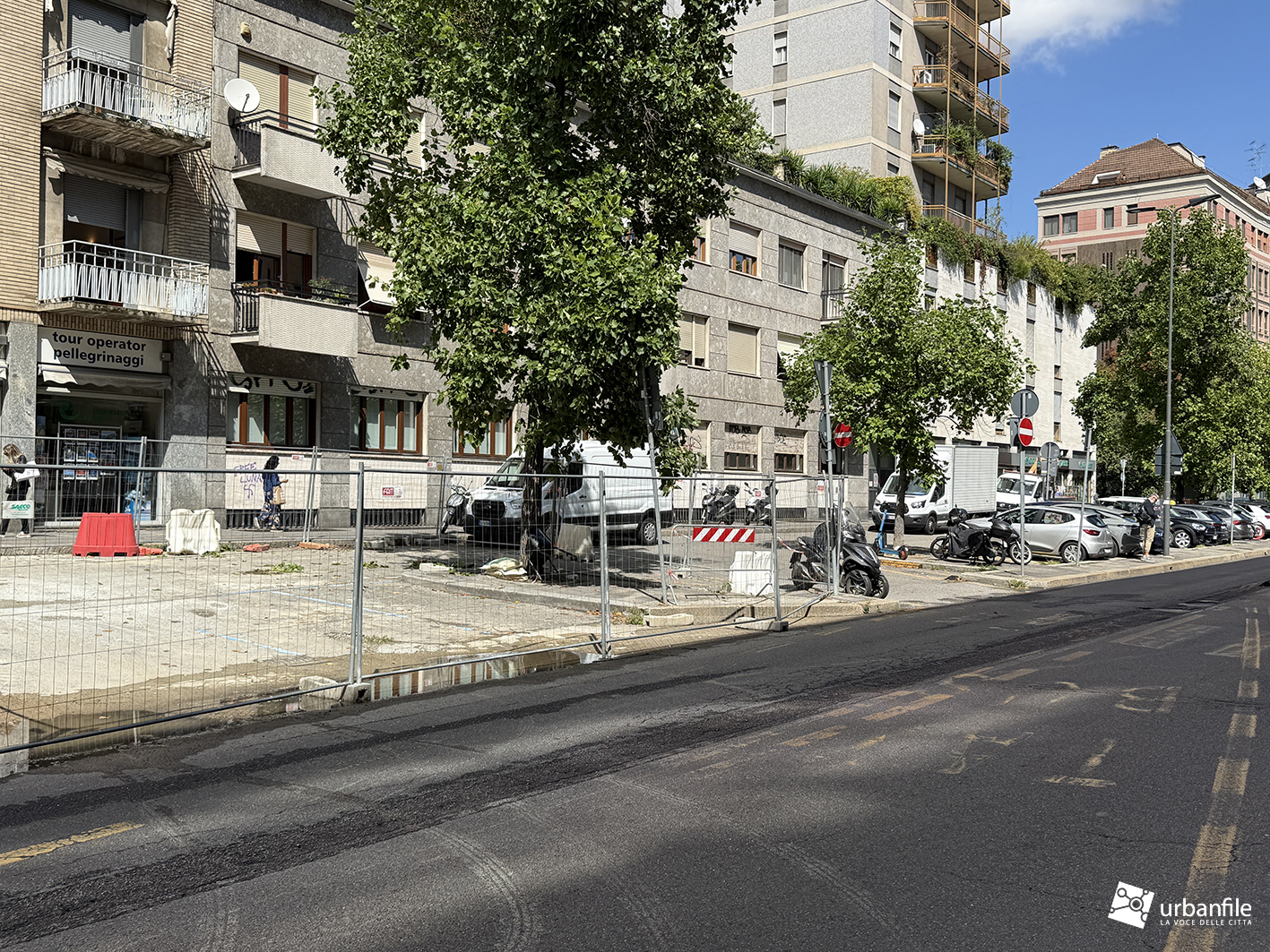 Aggiornamento fotografico dal cantiere per il ripristino dell’arredo urbano dopo la rimozione dei cantieri per la realizzazione della stazione M4 Santa Sofia, aperta dall’ottobre 2024.