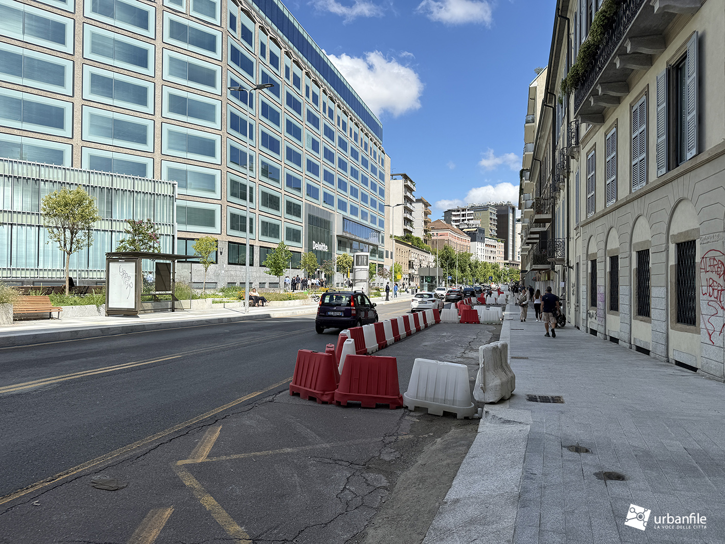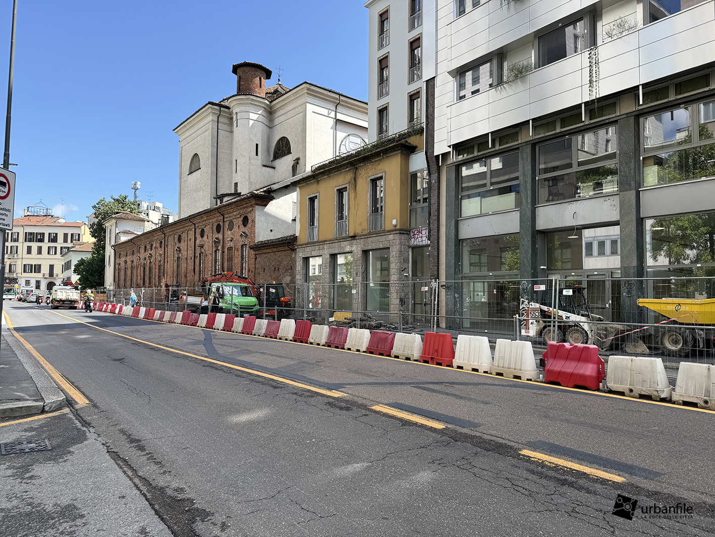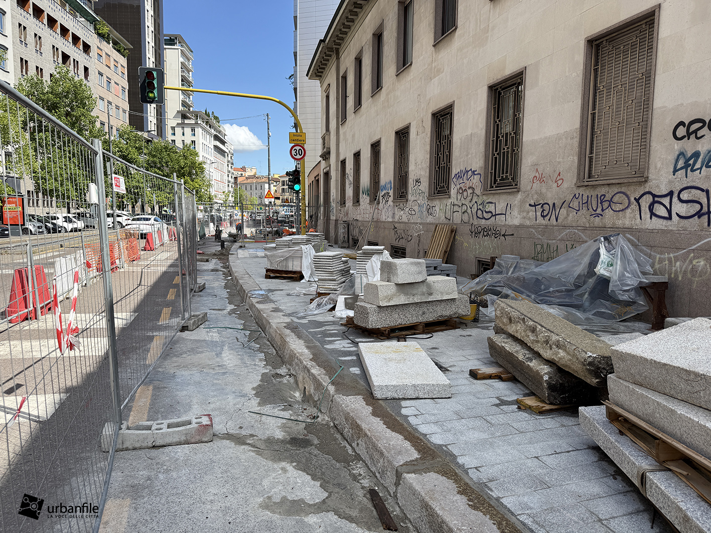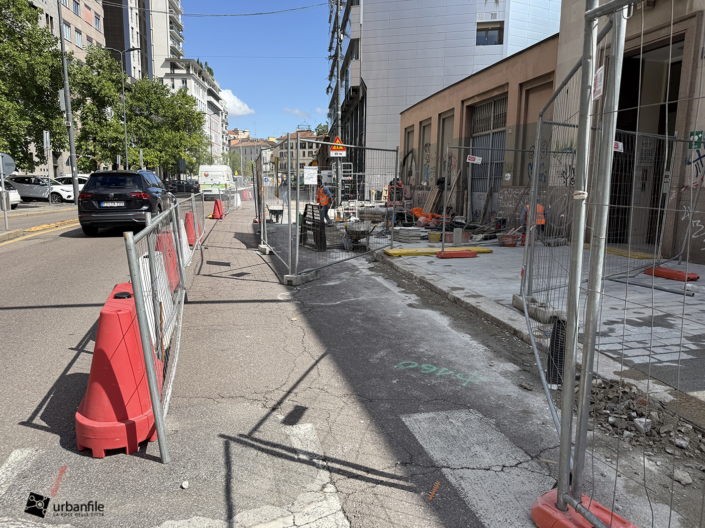 Il marciapiede dei civici pari interessato dal cantiere M4, è praticamente completato da largo Sacerdoti sino al civico 24, come si vede dalle immagini.