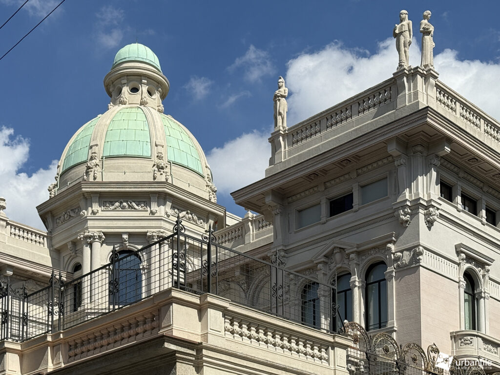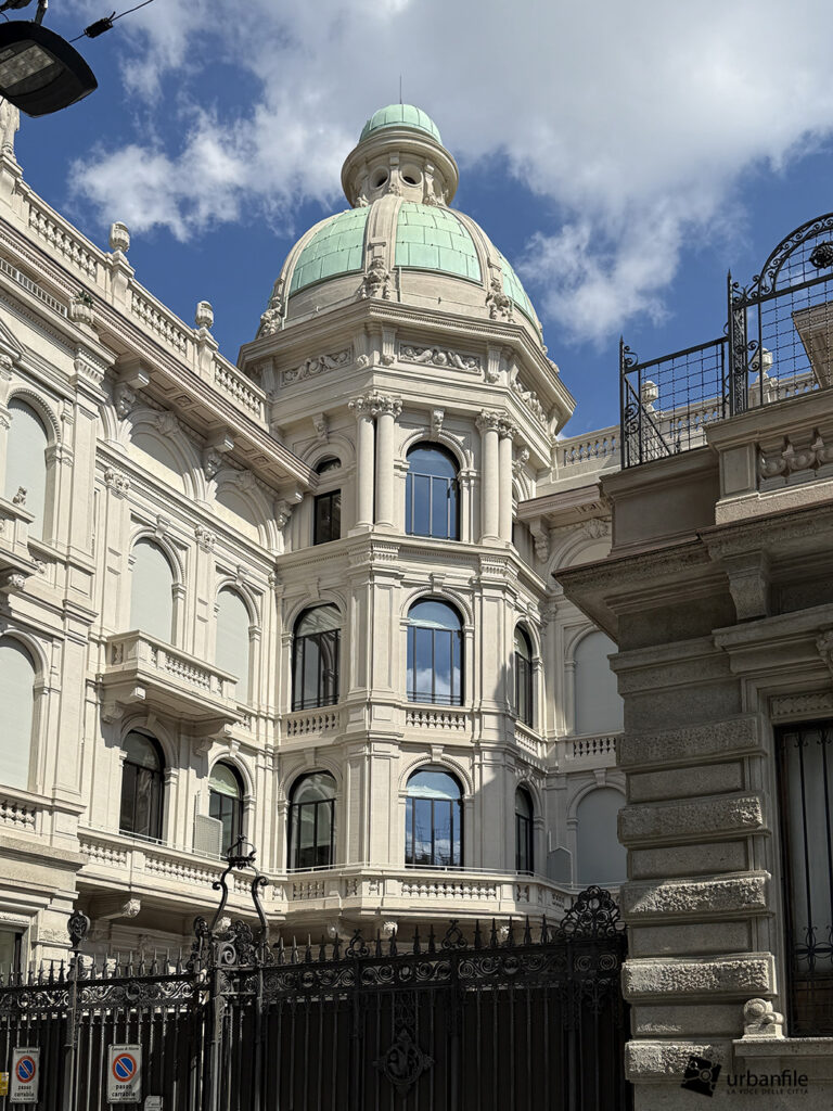 L’edificio costruito tra il 1910 e il 1920, che occupa i civici 5 e 7 di via Mellerio, si distingue per la ricchezza della sua decorazione eclettica, che già anticipa lo stile liberty e le pareti candide. A colpire lo sguardo è soprattutto la scenografica cupoletta centrale rivestita in rame, affiancata da giardini pensili, terrazze, statue e ornamenti ispirati anche all’arte egizia.