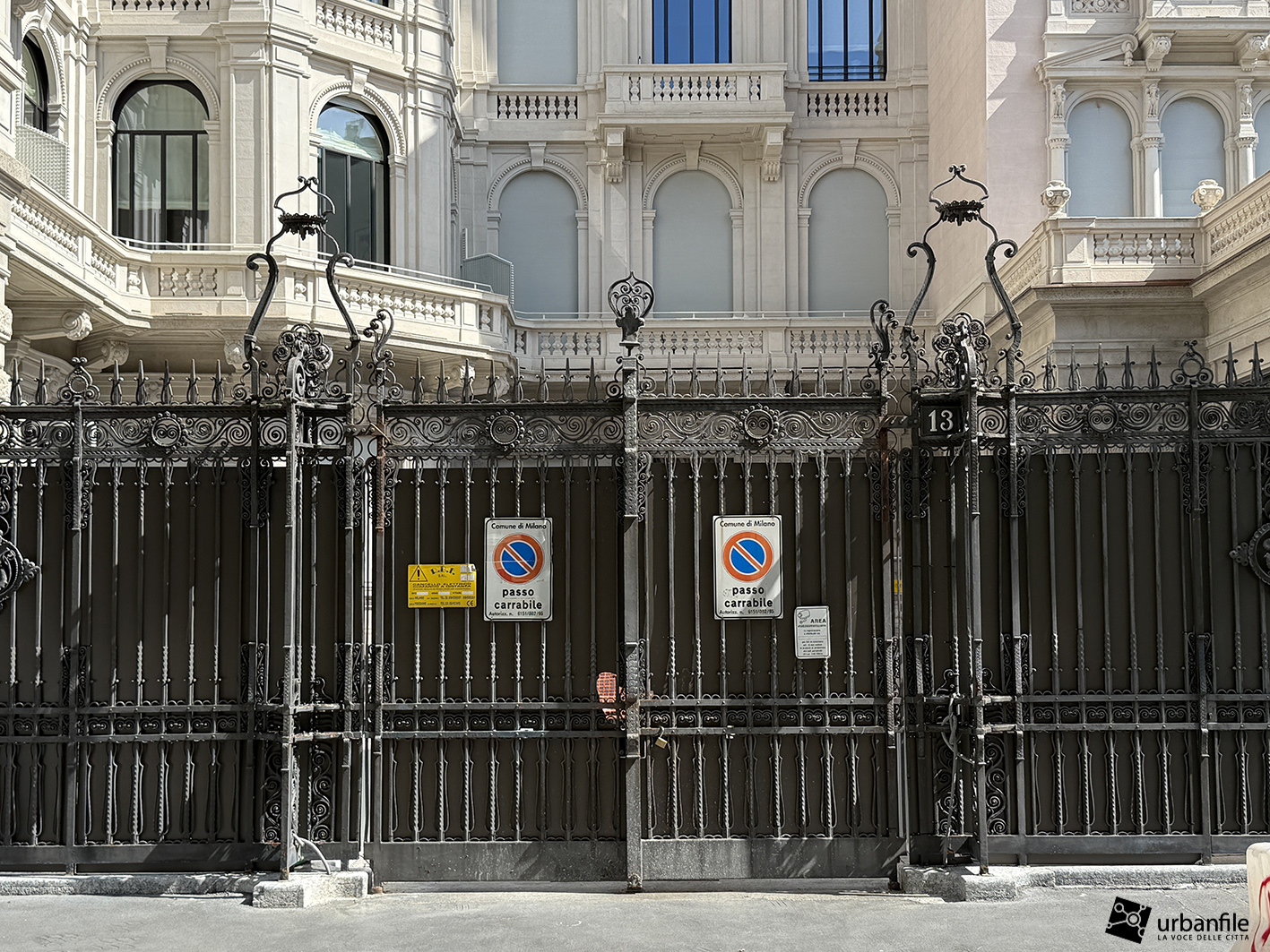 L’edificio costruito tra il 1910 e il 1920, che occupa i civici 5 e 7 di via Mellerio, si distingue per la ricchezza della sua decorazione eclettica, che già anticipa lo stile liberty e le pareti candide. A colpire lo sguardo è soprattutto la scenografica cupoletta centrale rivestita in rame, affiancata da giardini pensili, terrazze, statue e ornamenti ispirati anche all’arte egizia.