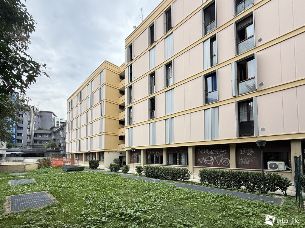 Il complesso di 75 alloggi è suddiviso in due scale, si presenta col classico aspetto moderno e un po’ brutalista dell’architettura del tempo. Le facciate sono in cemento intonacate di un lieve color rosa, ora ripristinato, le finestre a tutt’altezza sono serrate da infissi e persine in legno. Il piano terra contiene degli spazi comuni che il Comune affitta spesso a enti o associazioni. L’ingresso al 15 di via Statuto consente anche un rapido passaggio per Corso Garibaldi attraverso un piccolo giardinetto condominiale e una corte (un po’ anonima).