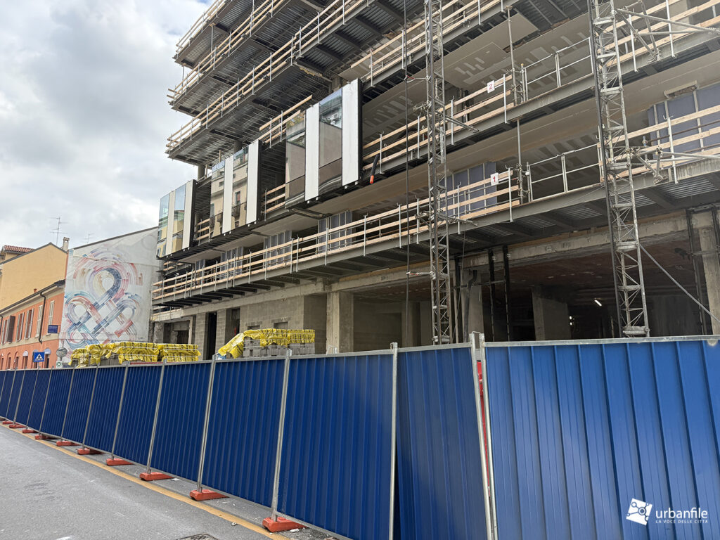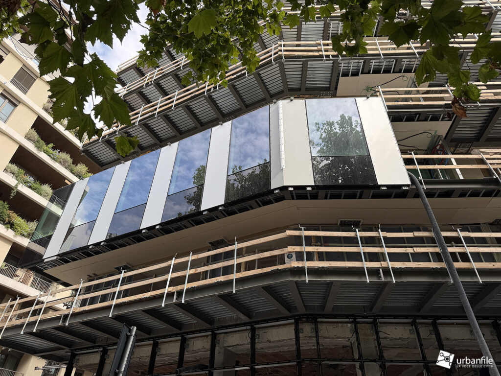 E’ giunto il momento che vede il montaggio dei pannelli che formeranno le facciate (agganciate) al palazzo in riqualificazione di via Vespucci 2, Piazza Principessa Clotilde e via Marco Polo a Porta Nuova. Su via Marco Polo è stato aggiunto un piano, come si vede dalle foto a seguire.