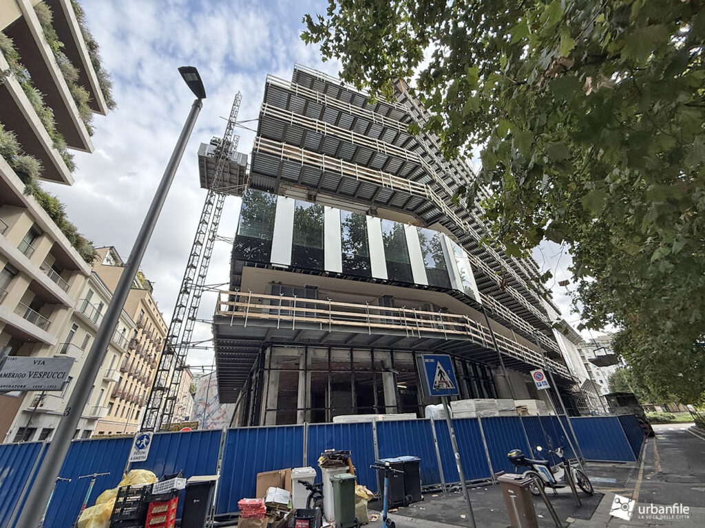 Come abbiamo visto, i lavori, partiti lo scorso novembre, vedono la rigenerazione dell’edificio di proprietà di Ardian e gestito da InvestireSGR di 9 piani e con una superficie lorda di 12.300 metri quadrati che occupa un lotto posto tra Piazza Principessa Clotilde, via Vespucci 2 e via Marco Polo a Porta Nuova.