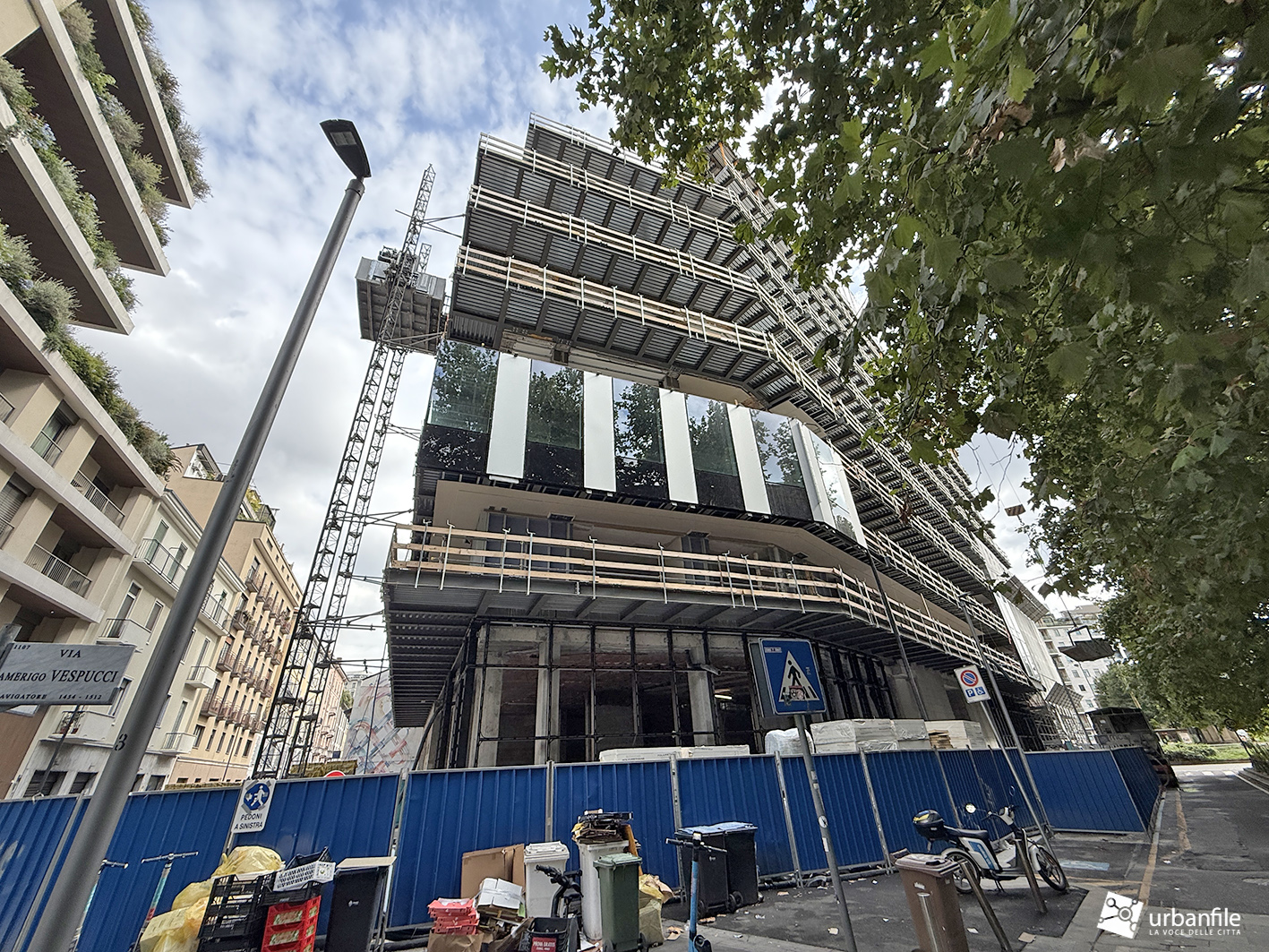 E’ giunto il momento che vede il montaggio dei pannelli che formeranno le facciate (agganciate) al palazzo in riqualificazione di via Vespucci 2, Piazza Principessa Clotilde e via Marco Polo a Porta Nuova. Su via Marco Polo è stato aggiunto un piano, come si vede dalle foto a seguire.