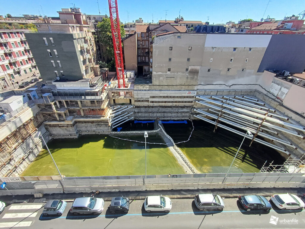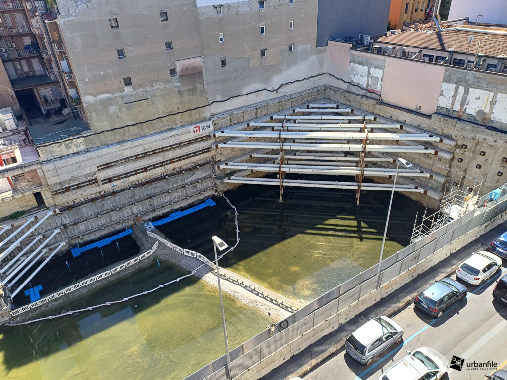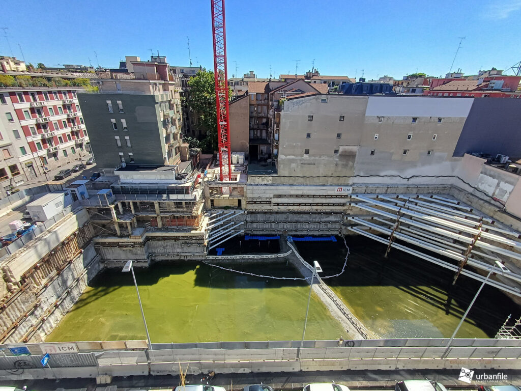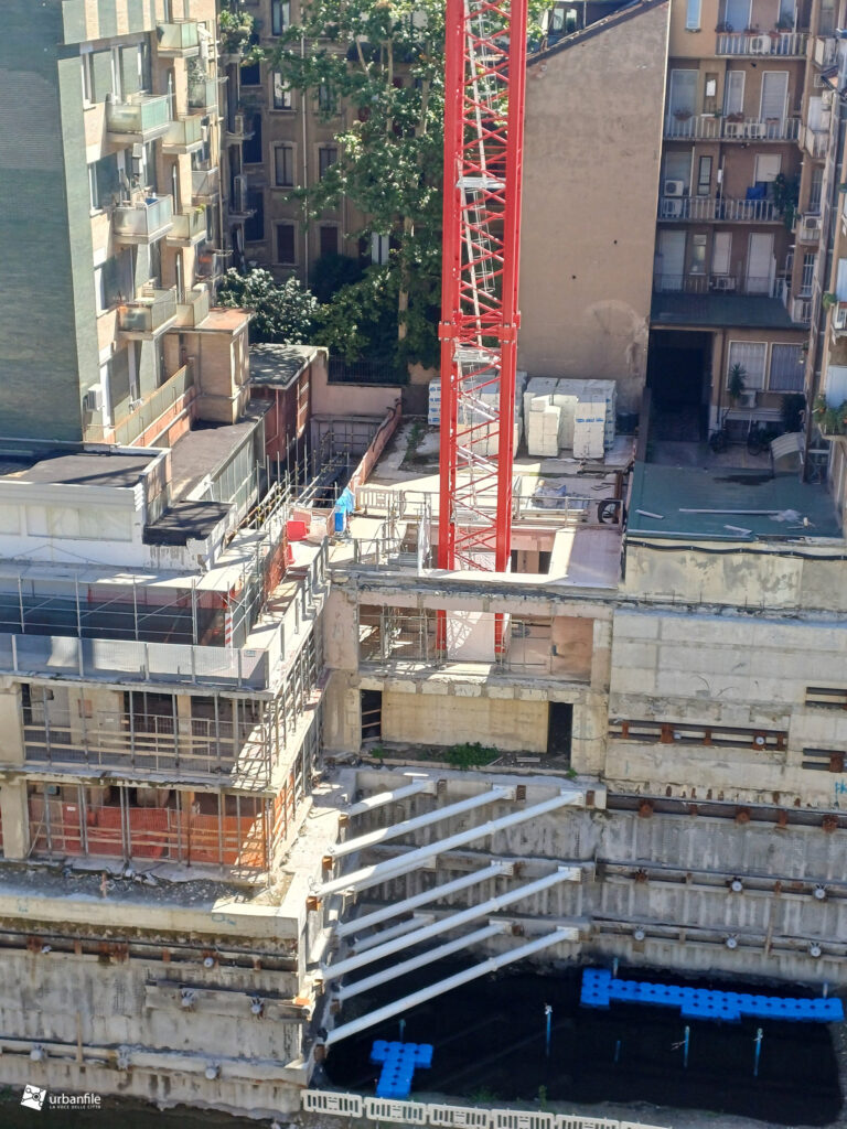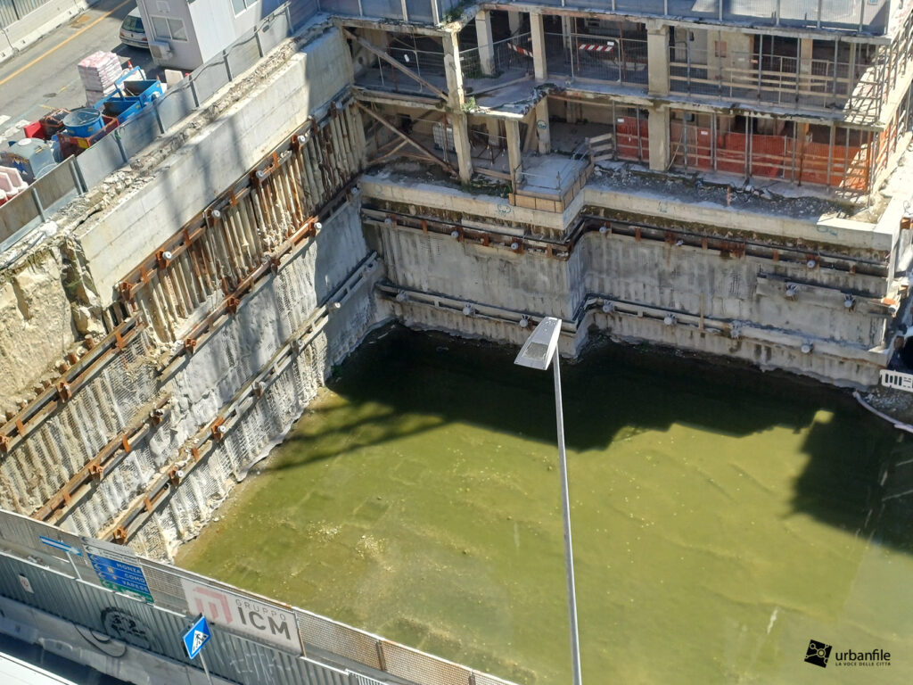 Il cantiere, dopo lo scavo e il montaggio dell’altissima gru nell’agosto 2024, è fermo completamente, senza traccia di alcun intervento, dallo scorso marzo. La falda acquifera si è presa possesso dello scavo trasformandolo in un gigantesco acquitrino a due passi dalla stazione Centrale. Non siamo riusciti a scoprire le motivazioni di questo ritardo che inizia ad essere preoccupante.