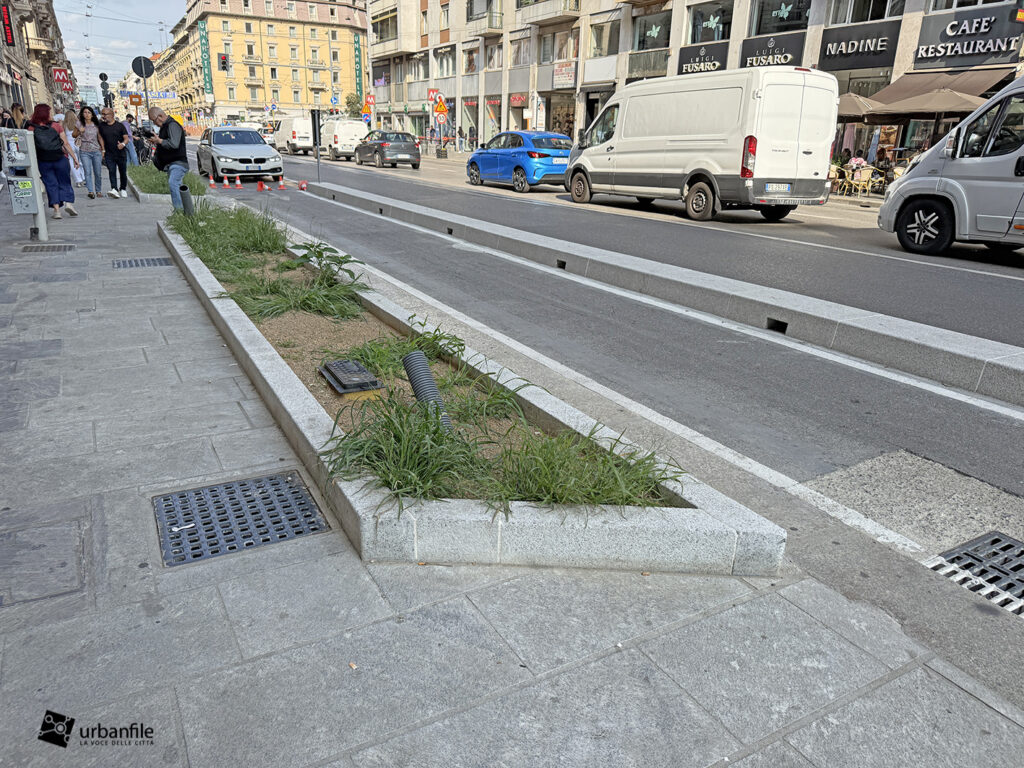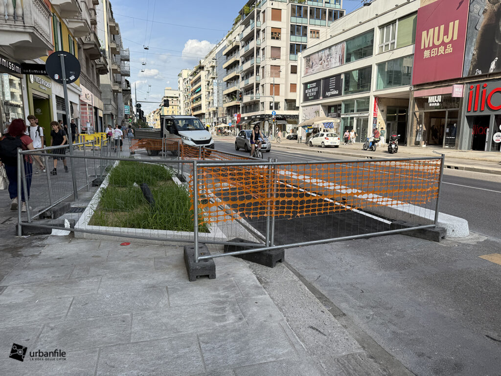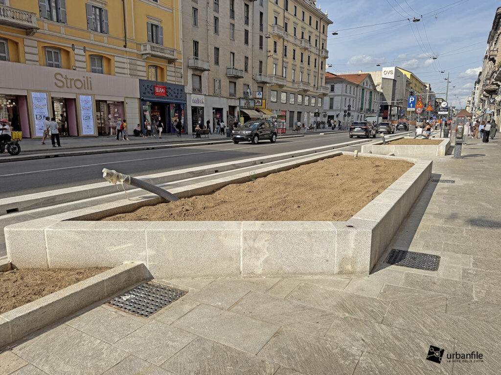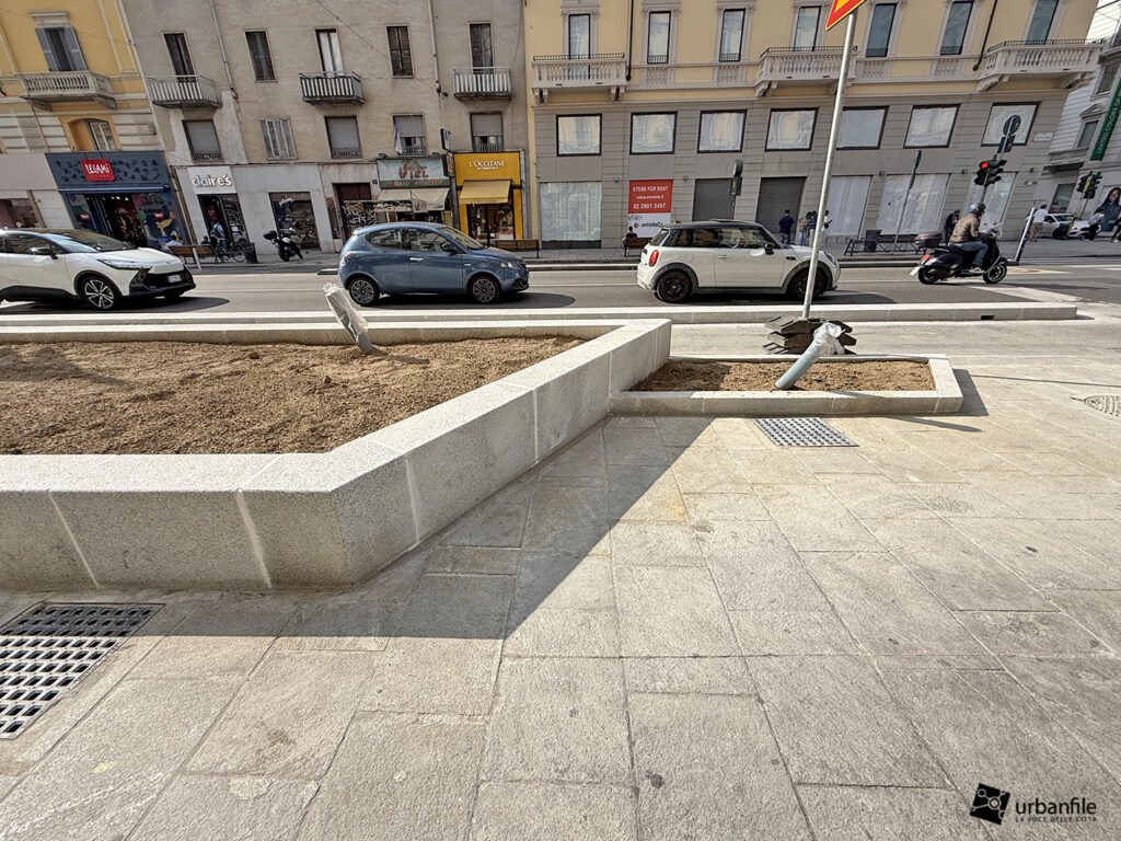 Così partiamo dall’incrocio di Corso Buenos Aires con viale Tunisia e viale Regina Giovanna e risaliamo sino alle vie San Gregorio/Omboni dove è stato completato l’intervento. Mancano solo le piante nelle vasche.