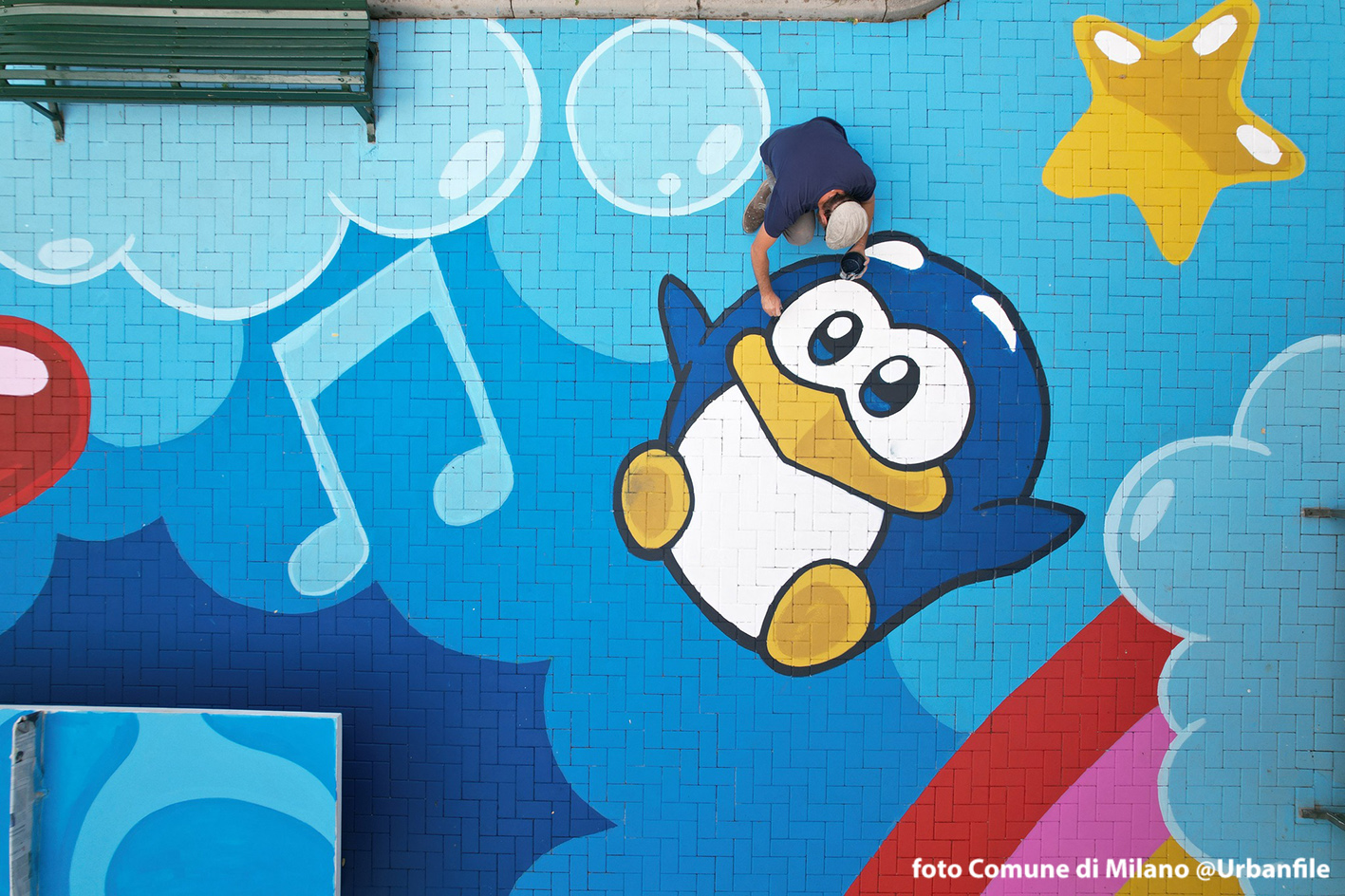 L’area giochi di piazza Belloveso a Niguarda (Municipio 9, Milano) è stata completamente rinnovata grazie a una collaborazione tecnica tra Comune di Milano e HARIBO (azienda dolciaria). Il progetto ha introdotto nuove attrezzature ludiche – altalene, torre con scivoli, parete da arrampicata – insieme a una pavimentazione anti-trauma in materiali riciclati e a una vivace decorazione realizzata dallo street artist milanese PAO.