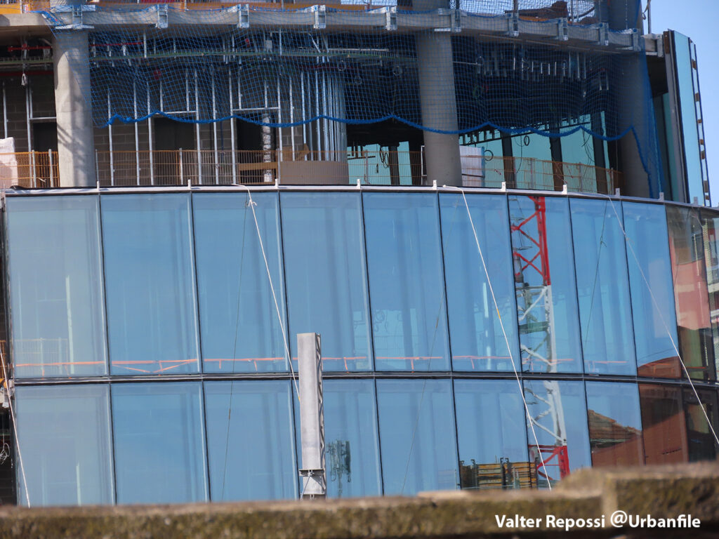 Mentre la torre prosegue nella sua crescita, alla base iniziano a montare le vetrate della facciata. Intanto il piano dello Sky Garden è stato completato e hanno cominciato a realizzare la prima soletta del blocco superiore.