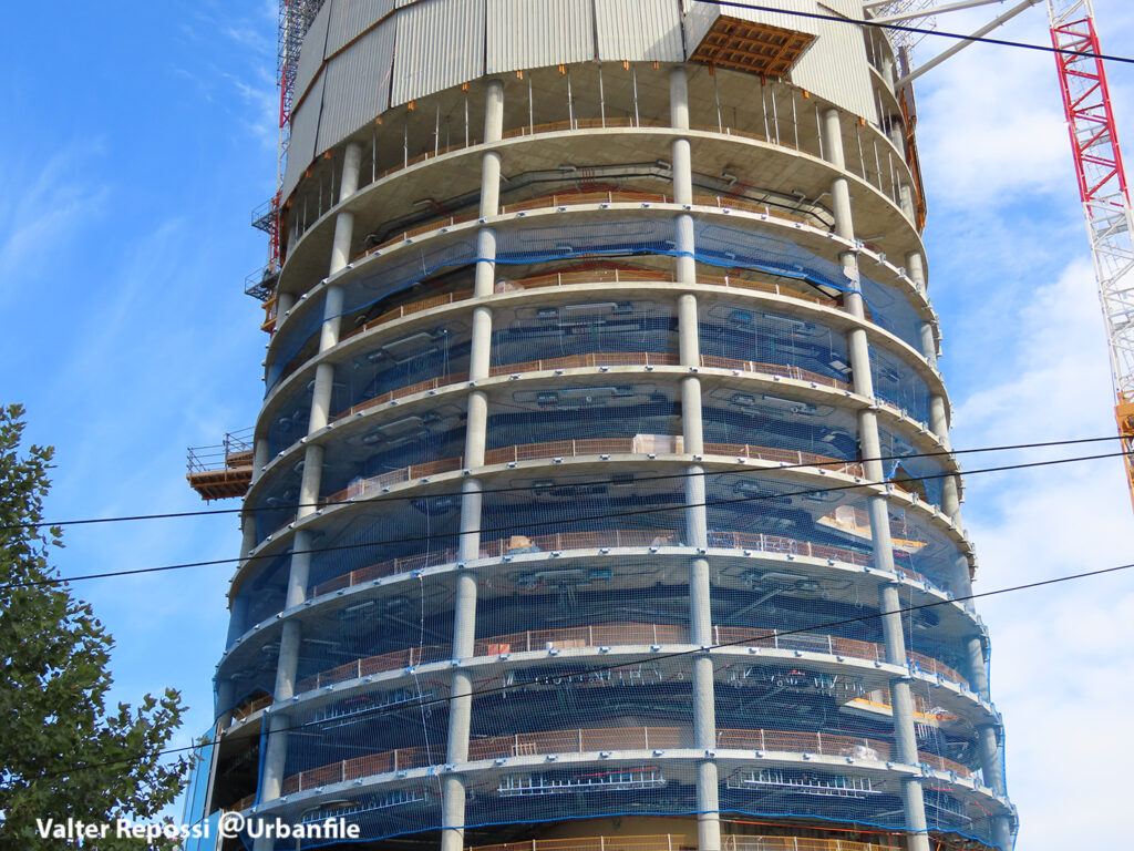 La torre cilindrica e rastremata avrà una pianta circolare e prevederà i primi 12 piani ad uso uffici, uno Sky Garden a 60 metri di altezza e aperto su uno dei suoi lati, seguiranno altri 10 piani di uffici ed un belvedere, accessibile dal pubblico, posto sulla sommità della torre. L’impresa che sta costruendo la torre è CMB con Colombo Costruzioni.