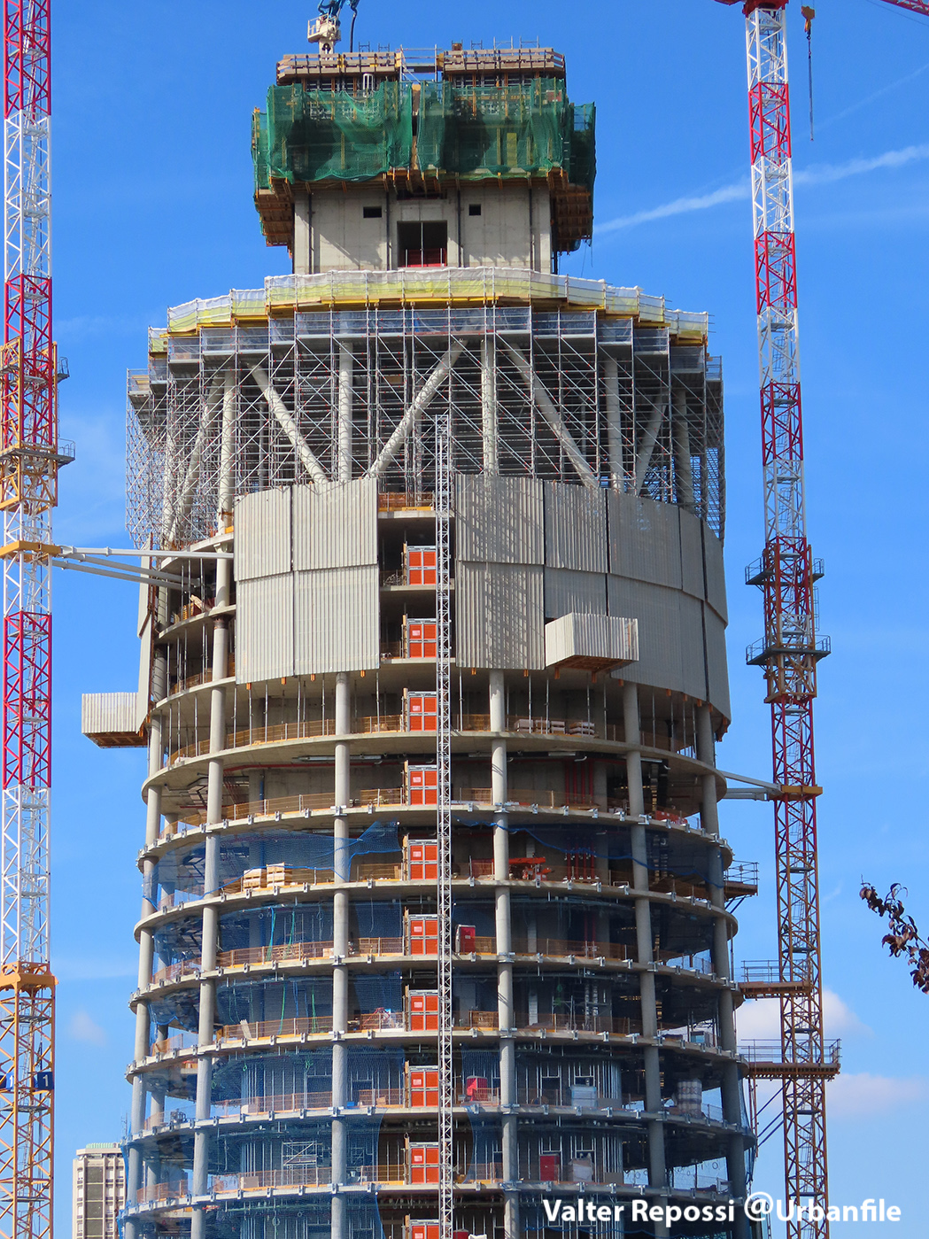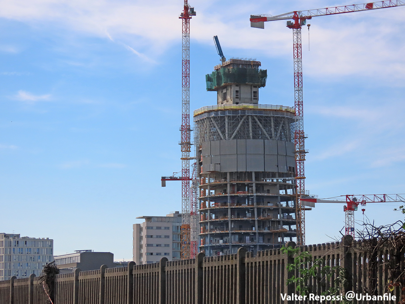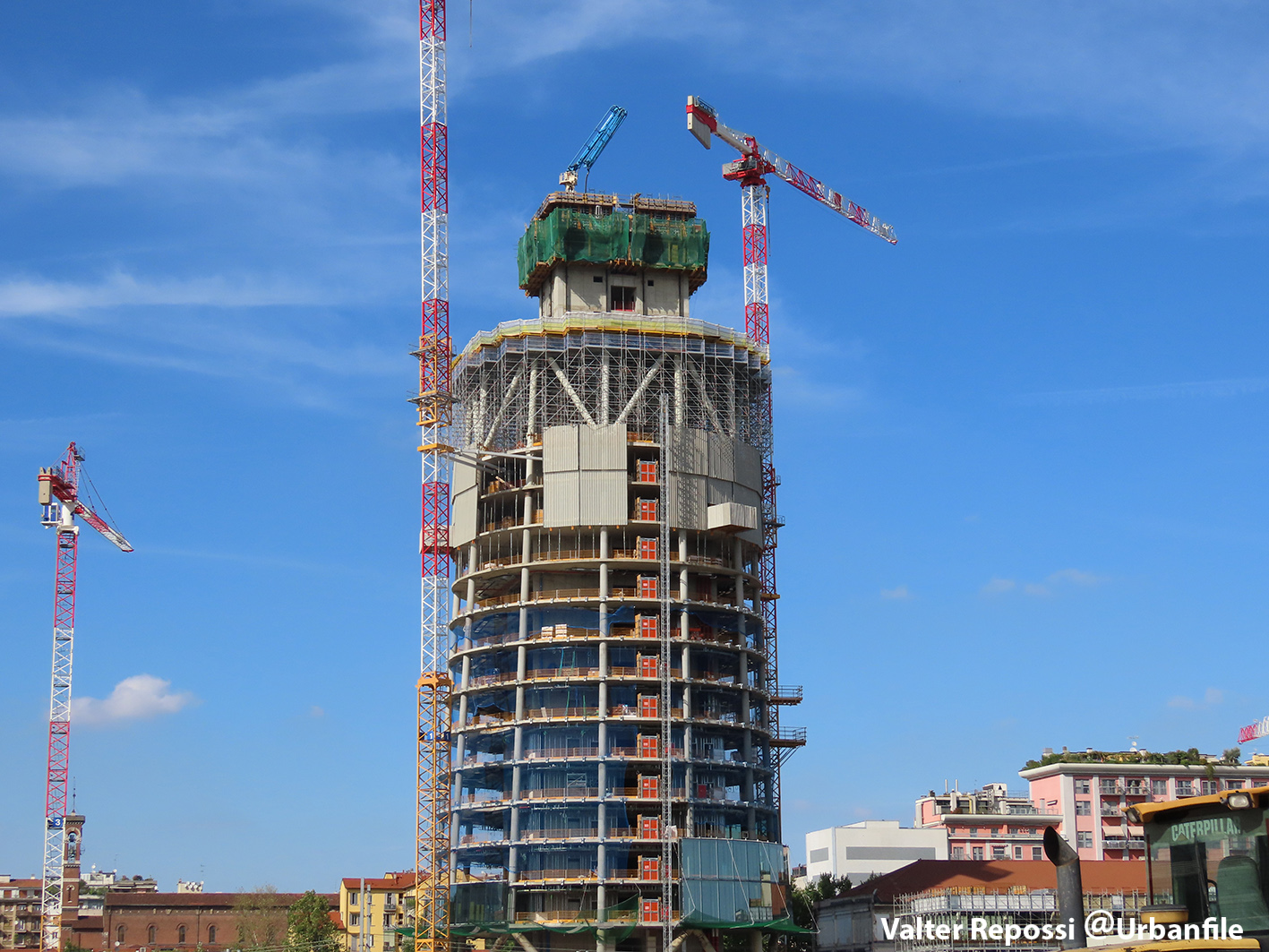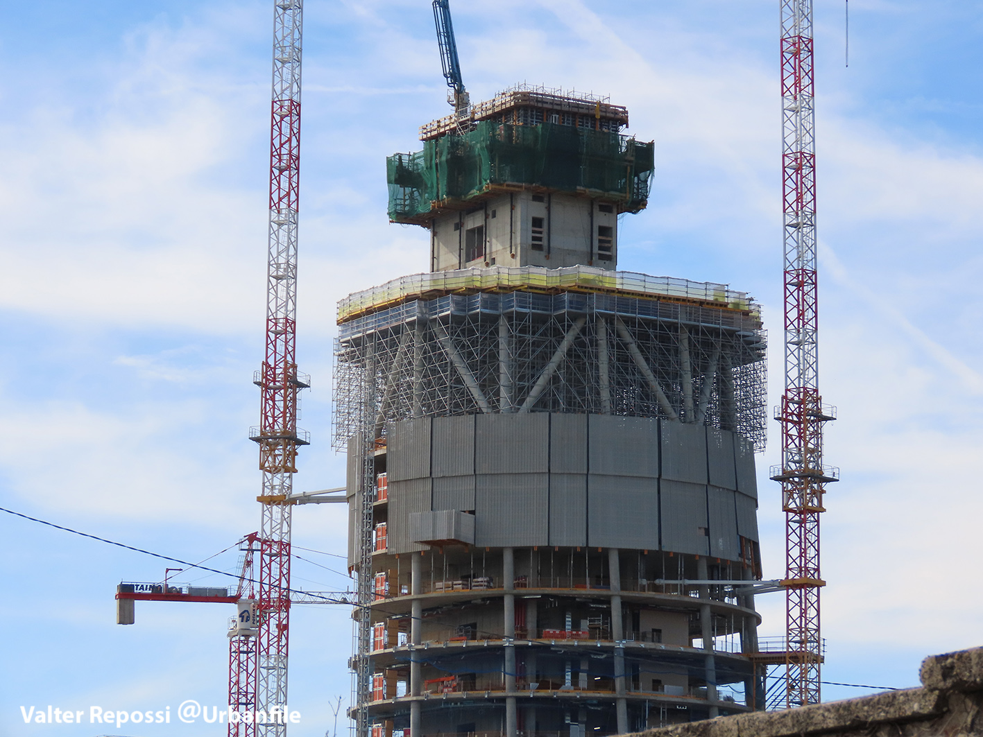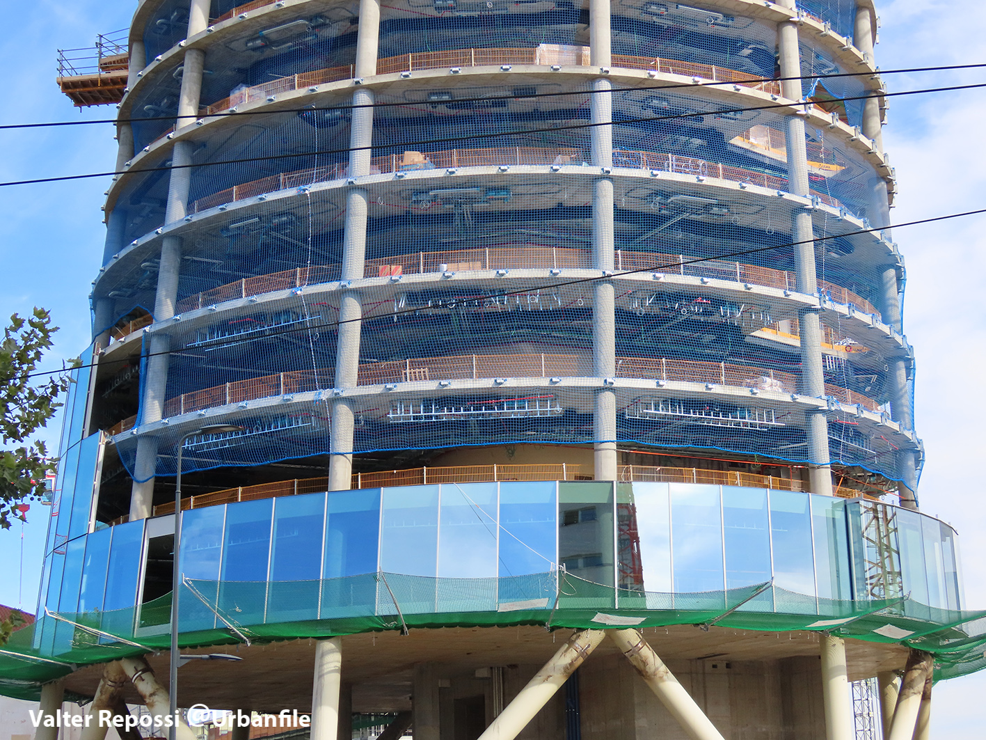 La torre cilindrica e rastremata avrà una pianta circolare e prevederà i primi 12 piani ad uso uffici, uno Sky Garden a 60 metri di altezza e aperto su uno dei suoi lati, seguiranno altri 10 piani di uffici ed un belvedere, accessibile dal pubblico, posto sulla sommità della torre. L’impresa che sta costruendo la torre è CMB con Colombo Costruzioni.