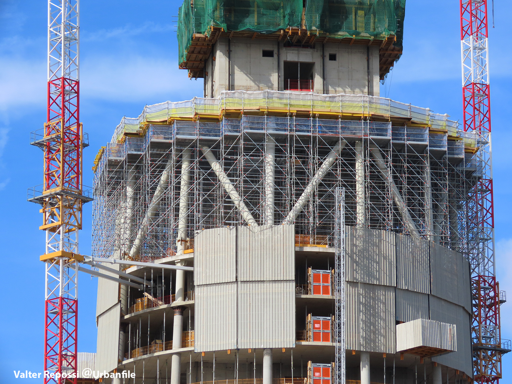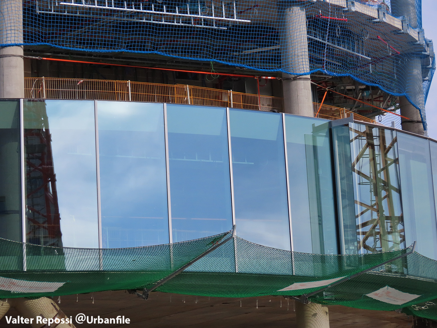 Mentre la torre prosegue nella sua crescita, alla base iniziano a montare le vetrate della facciata. Intanto il piano dello Sky Garden è stato completato e hanno cominciato a realizzare la prima soletta del blocco superiore.