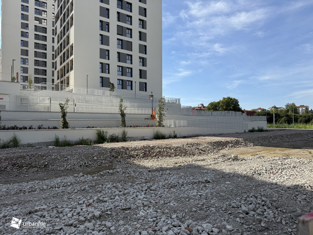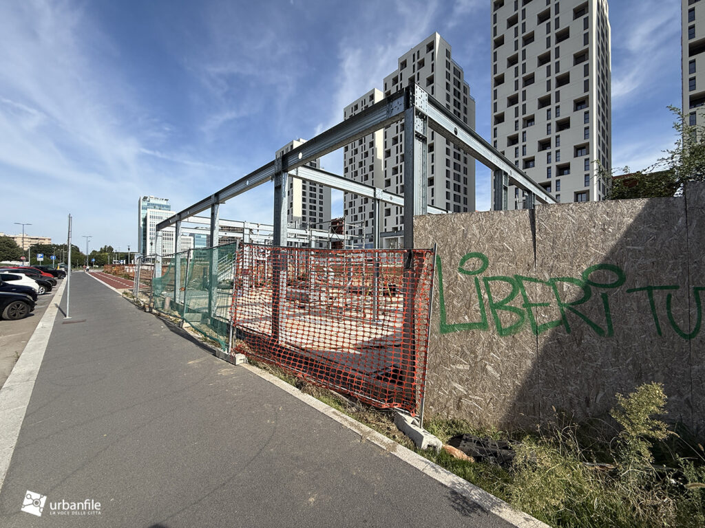 Le palazzine lungo l’arteria di via Bianca Ceva sono state già completate e consegnate ormai da due anni. La prima palazzina pare esser stata coperta in parte da un’impalcatura.