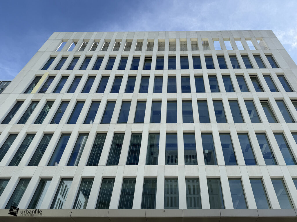 Il complesso , che abbiamo visitato qualche mese fa e e che torneremo a mostrarvi con gli spazi interni, è ormai pienamente operativo e con svariati tenant che hanno preso possesso dei loro nuovi uffici (a quanto ci risulta mancano solo alcuni spazi da allocare, per raggiungere le piena occupazione). Anche il pannello della facciata che ci hanno segnalato verrà presto ripristinato,