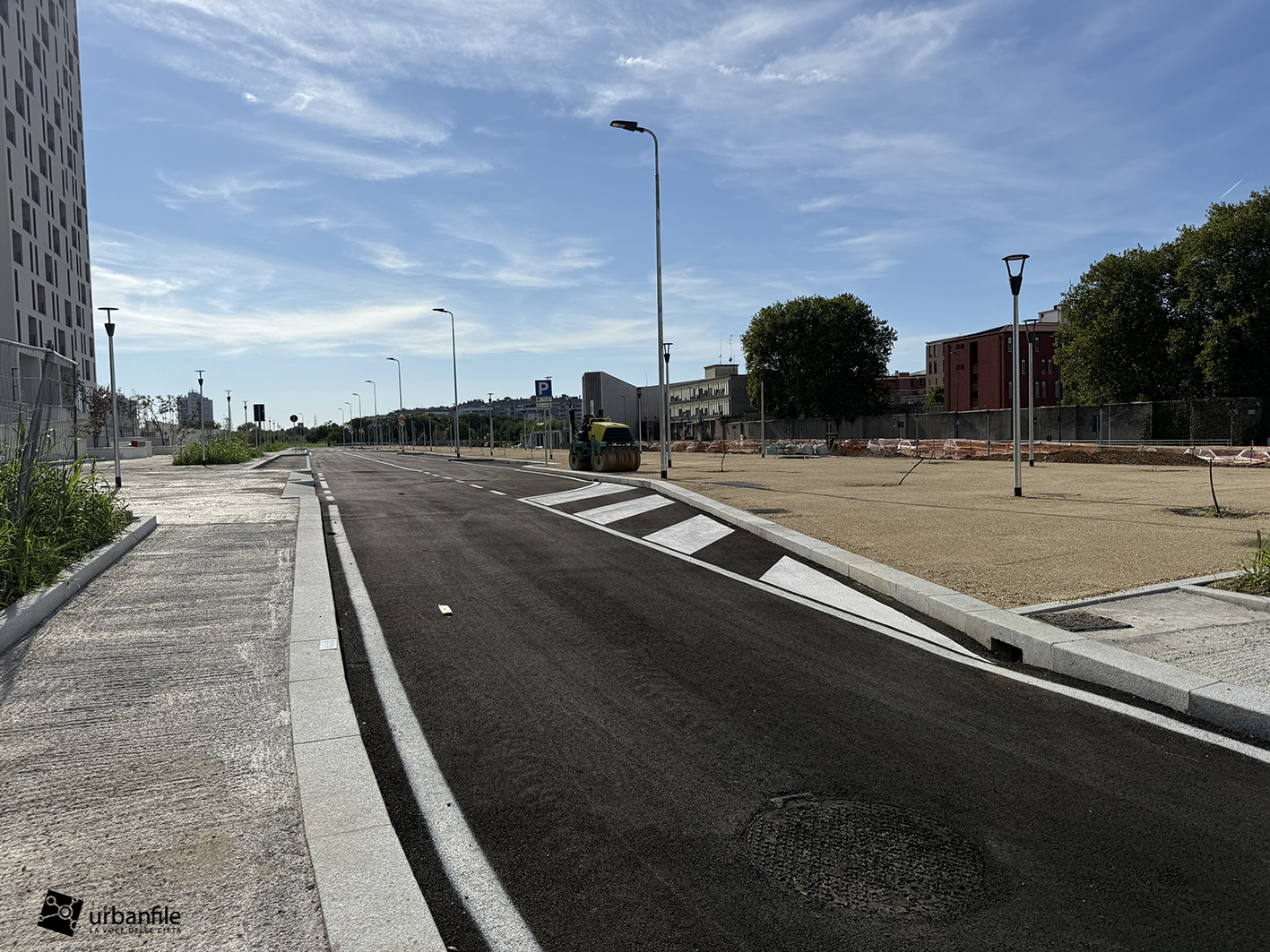 Le palazzine lungo l’arteria di via Bianca Ceva sono state già completate e consegnate ormai da due anni. La prima palazzina pare esser stata coperta in parte da un’impalcatura.