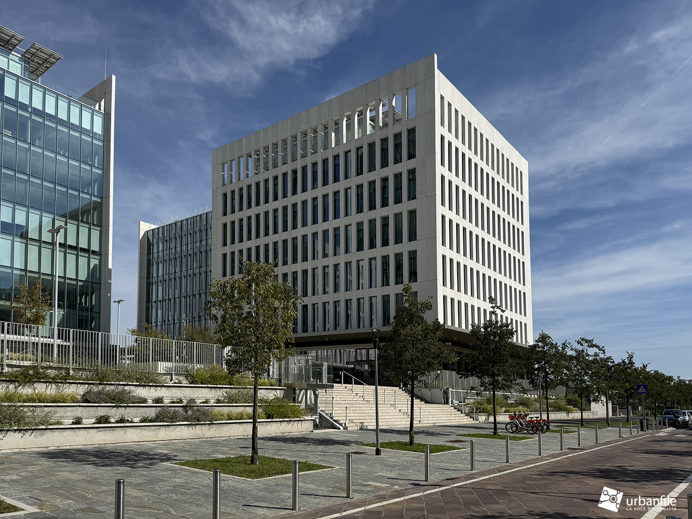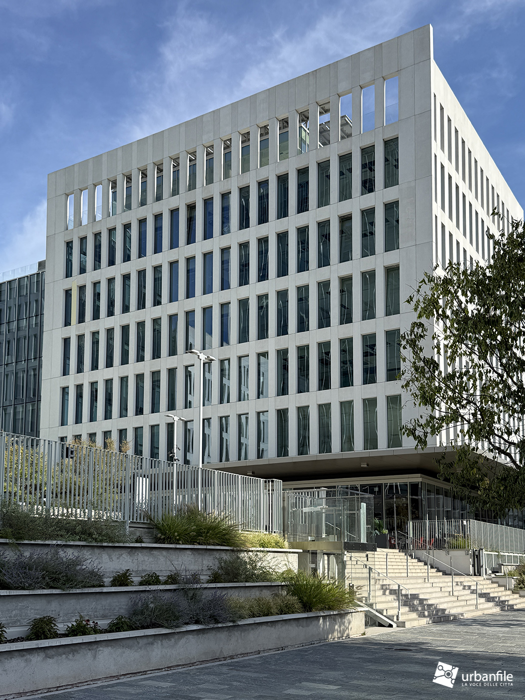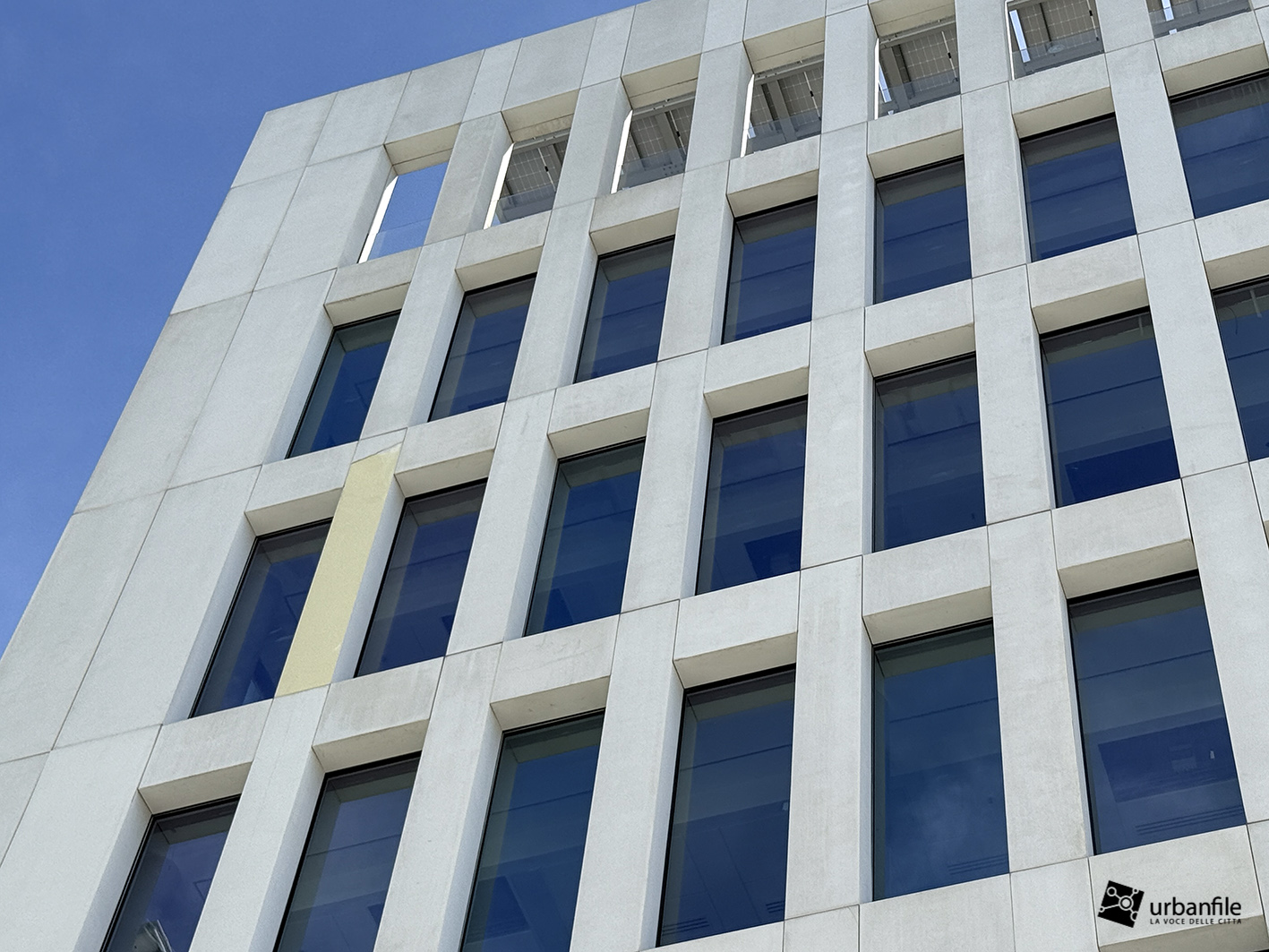 Il complesso , che abbiamo visitato qualche mese fa e e che torneremo a mostrarvi con gli spazi interni, è ormai pienamente operativo e con svariati tenant che hanno preso possesso dei loro nuovi uffici (a quanto ci risulta mancano solo alcuni spazi da allocare, per raggiungere le piena occupazione). Anche il pannello della facciata che ci hanno segnalato verrà presto ripristinato,