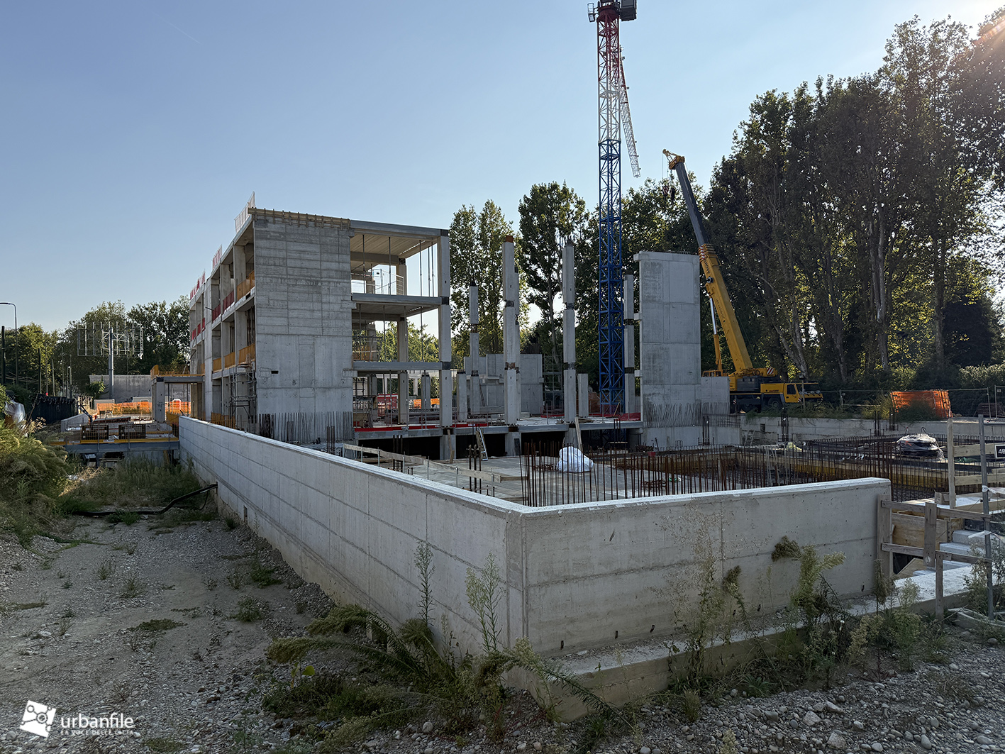 Quest’edificio, un tempo parte della fabbrica automobilistica Isotta Fraschini e costruito negli anni Cinquanta del Novecento, è in fase di ristrutturazione e riqualificazione secondo un progetto dello studio Piuarch. Anche qui sono cominciati i lavori per lo smontaggio delle impalcature che iniziano a mostrare parte delle nuove facciate.