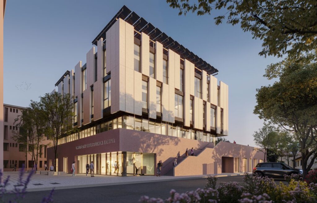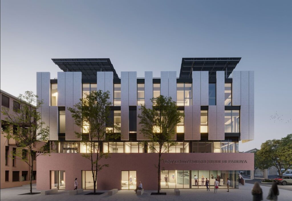 Il progetto prevede la realizzazione di un nuovo edificio tra via Gradenigo e via Ognissanti con l’esecuzione di un ampliamento di laboratori, aule e uffici. L’edificio è stato suddiviso in due parti: quella superiore, in corrispondenza del primo piano, sarà arretrata rispetto a quella inferiore ed è qui che sorgerà una terrazza verde di circa 600 metri quadri. Vi si potrà accedere da una scala esterna al piano terra che sarà aperta anche al pubblico. Il nuovo edificio polifunzionale sarà di 3.750mq. La struttura è realizzata in cemento armato e i pannelli della facciata sono realizzati in UHPC