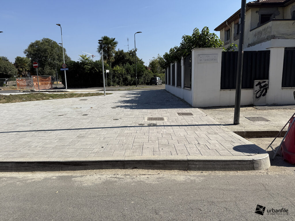La via Giaggioli è a senso unico da via Lorenteggio non da largo Fatima. Se uscendo da largo Fatima si vuole tornare sulla Lorenteggio bisogna fare il giro dell’oca (pericolosi e frequenti contromano a parte). Speriamo cambi.