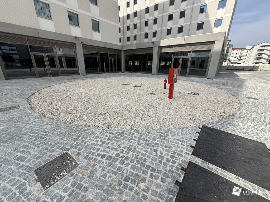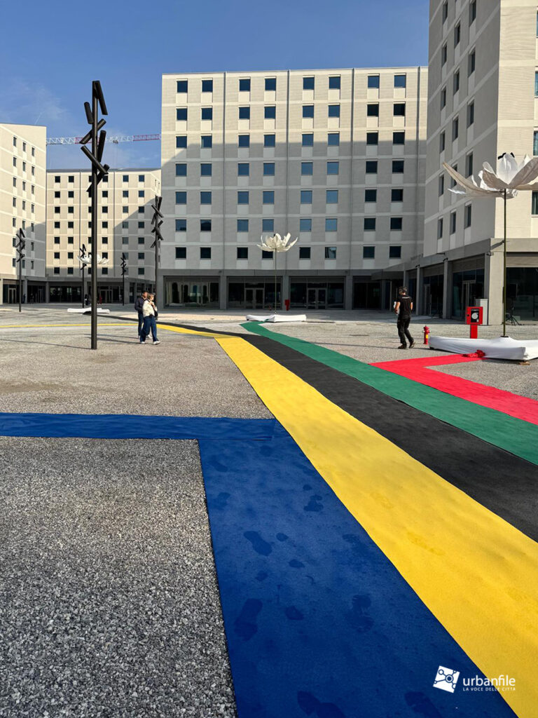 Di seguito alcuni scorci delle piazze che saranno rese pubbliche e che verranno alberate dopo l’evento olimpico. I cerchi che si vedono nella pavimentazione saranno depavimentati e diventeranno aiuole alberate.
