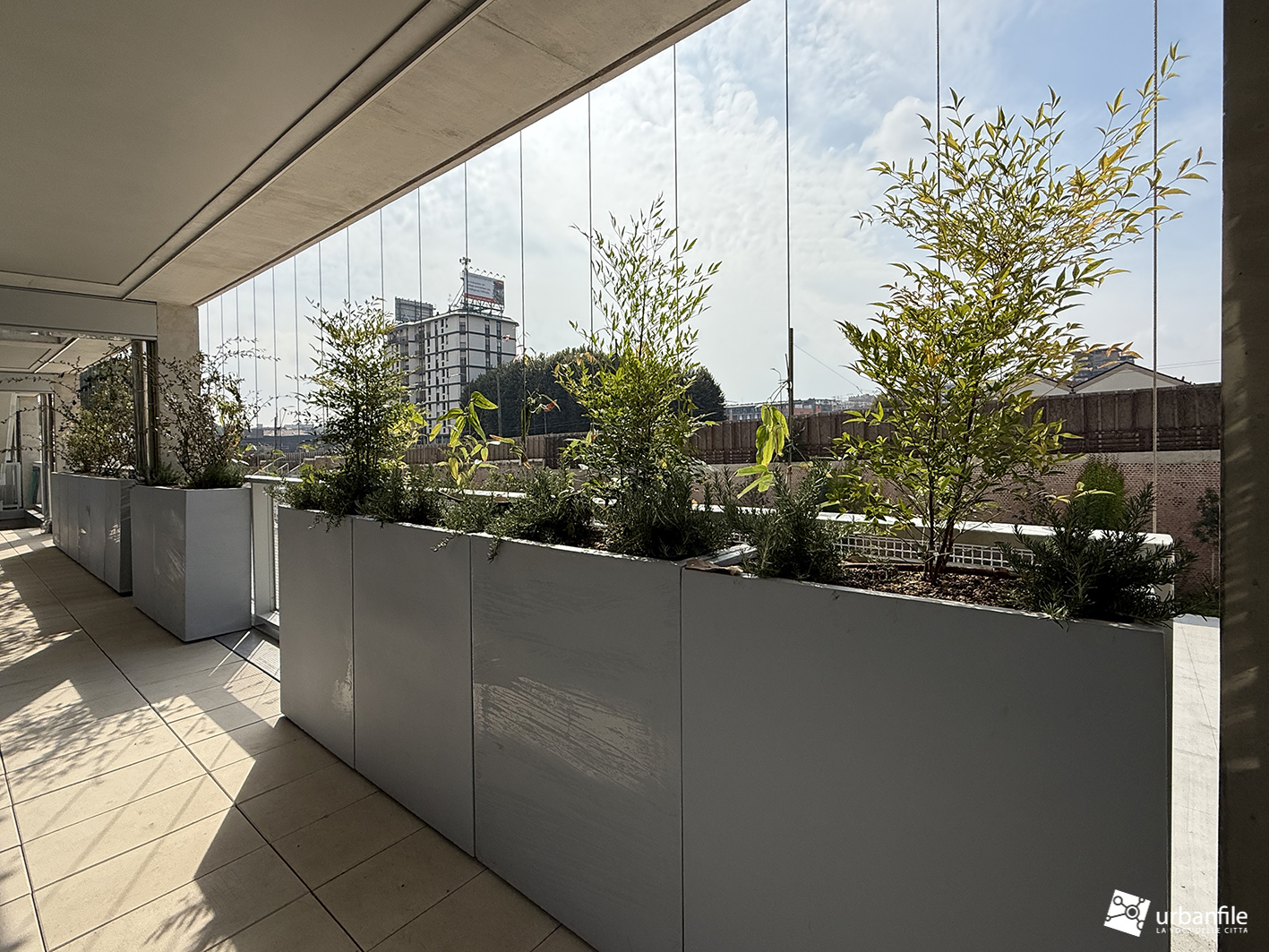 Verso via Ripamonti sulle terrazze sono già stati posizionate le fioriere. Ai piedi saranno realizzati i campi di basket e altri luoghi di agregazione.