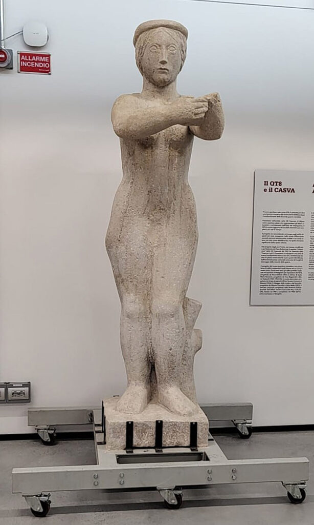 Torna al QT8 la “Donnina di Milano” di Marino Marini, l’imponente scultura in pietra calcarea realizzata dall’artista nei primi anni Trenta, che rappresenta una figura femminile dai tratti arcaici e sacrali, alta 2 metri e 30. Collocata da Piero Bottoni nei primi anni Cinquanta sulla cima del Monte Stella, la scultura ha accompagnato per decenni la vita del quartiere, diventandone un simbolo affettivo e identitario. Protagonista di una lunga vicenda di spostamenti, scomparse e successivi ritrovamenti, l’opera – parte delle collezioni del Museo del Novecento – è stata recentemente restaurata dal Museo della Scienza e della Tecnologia e viene ora restituita in via definitiva al QT8.