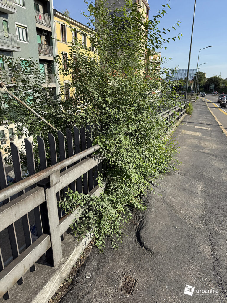 Naturalmente per rimarcare la sciatteria di questa città, il ponte Guido Crepax di viale Cassala (vicino di “casa”), “disboscato” solo qualche settimana fa, guarda caso gli olmi selvaggi, non estirpati, si sono già sviluppati, alla faccia degli interventi acqua e sapone del Comune di Milano.