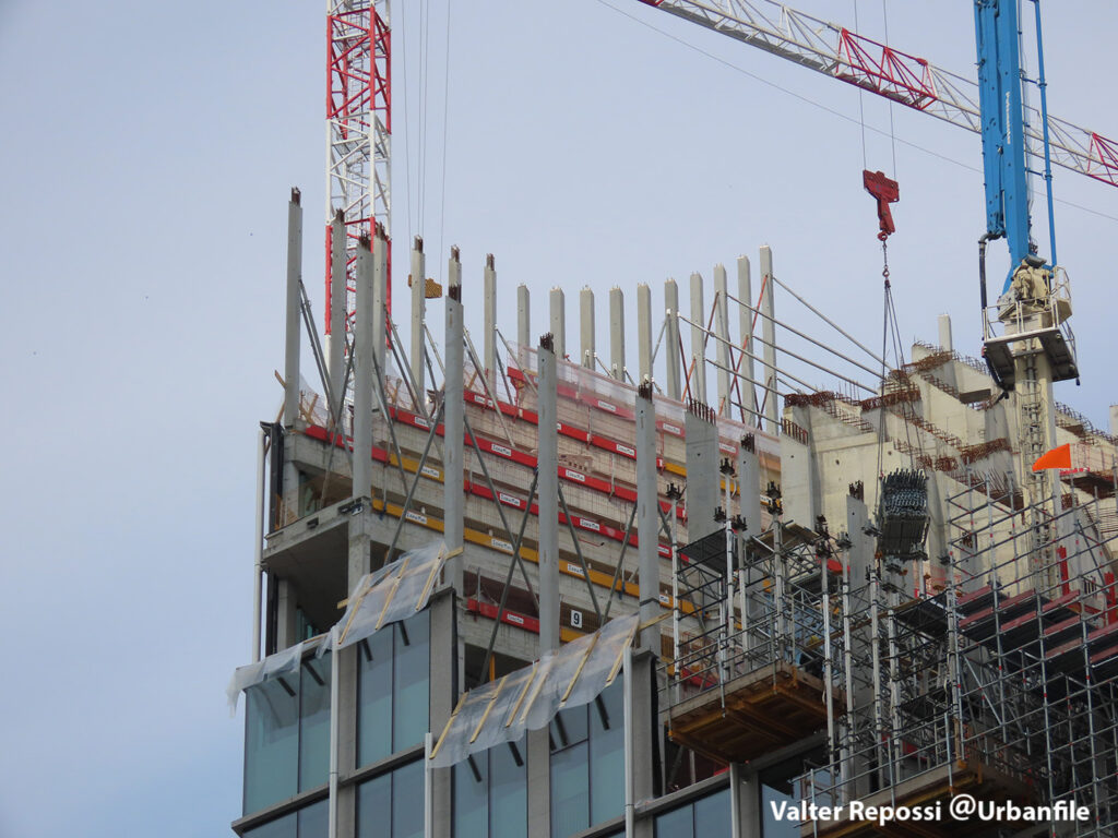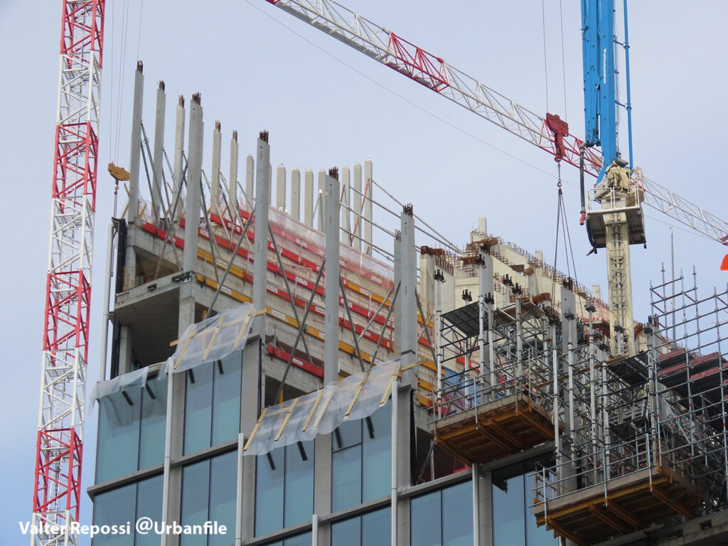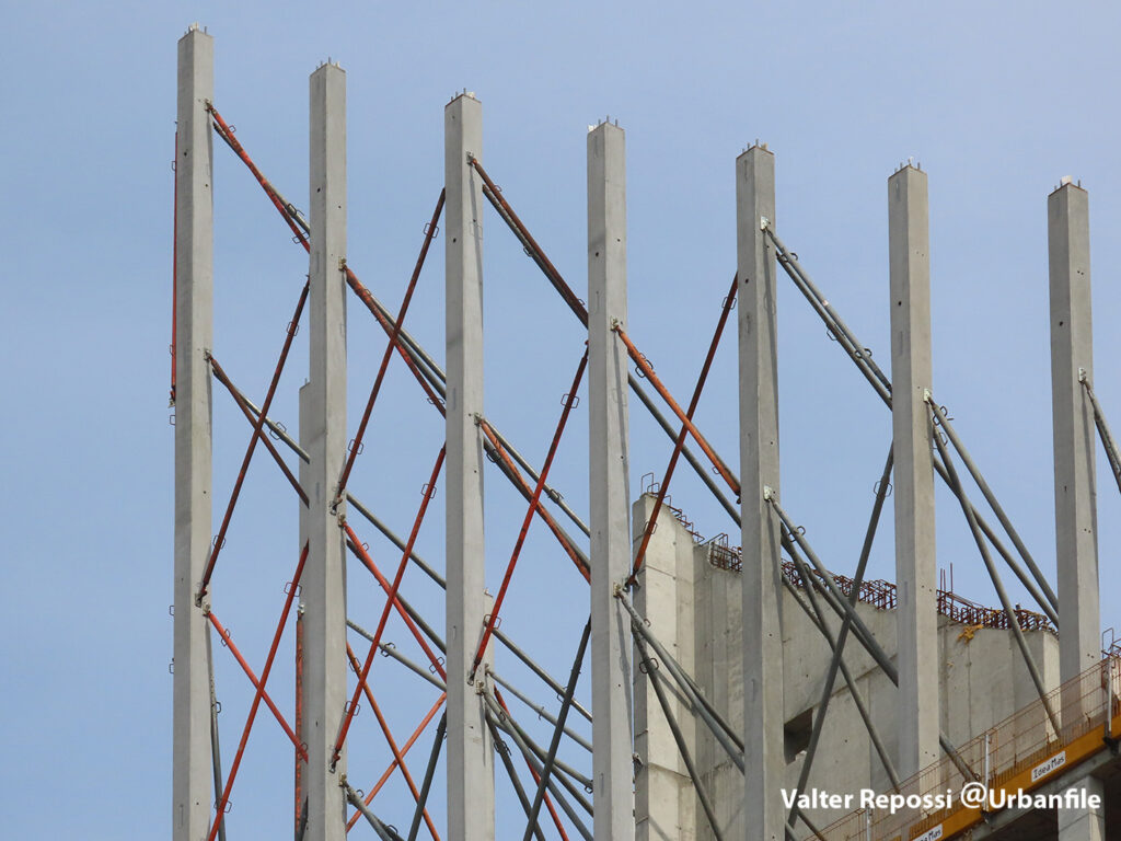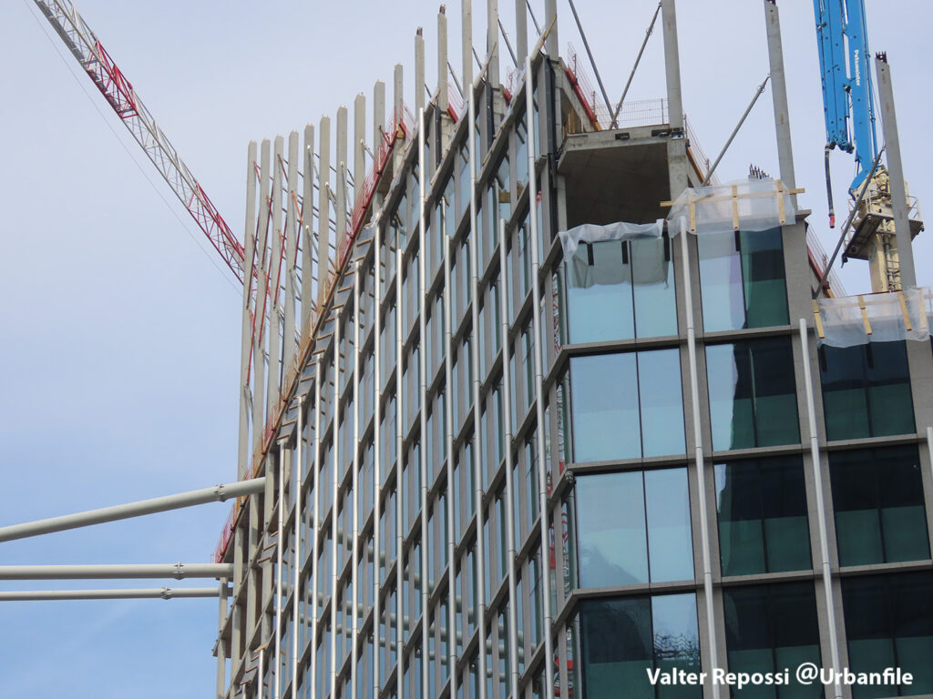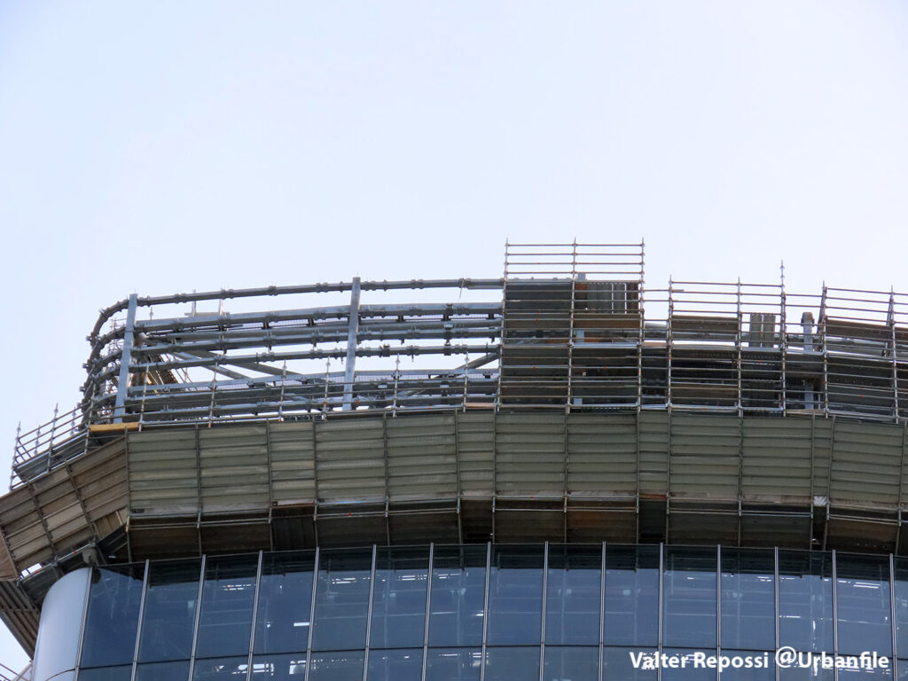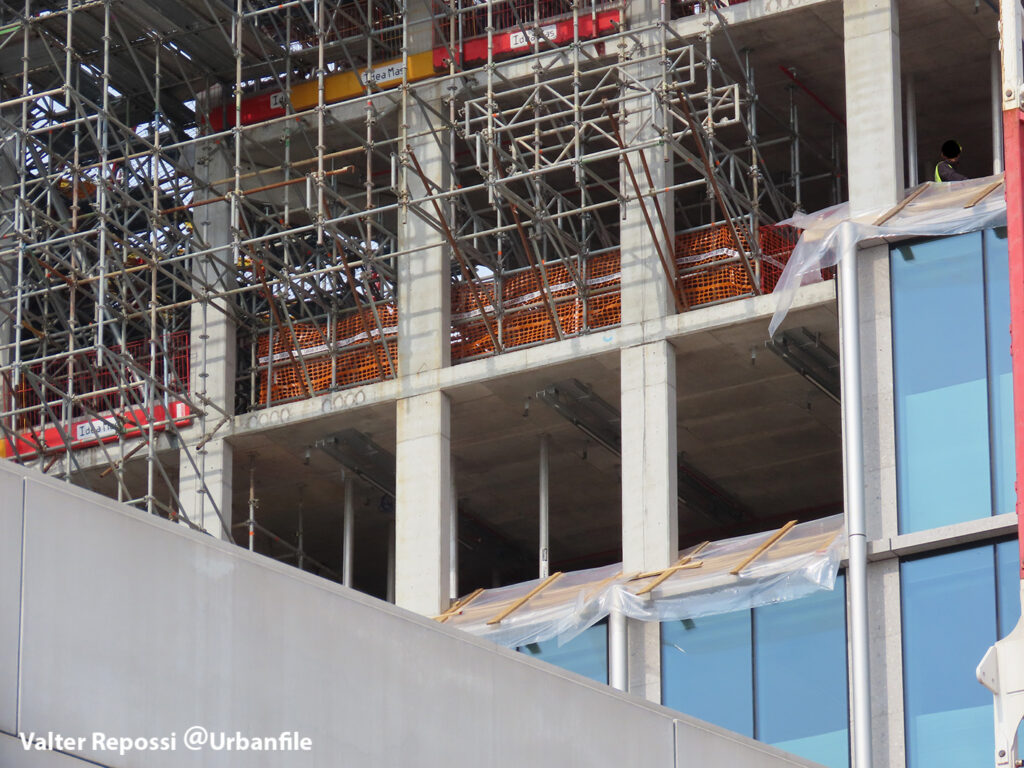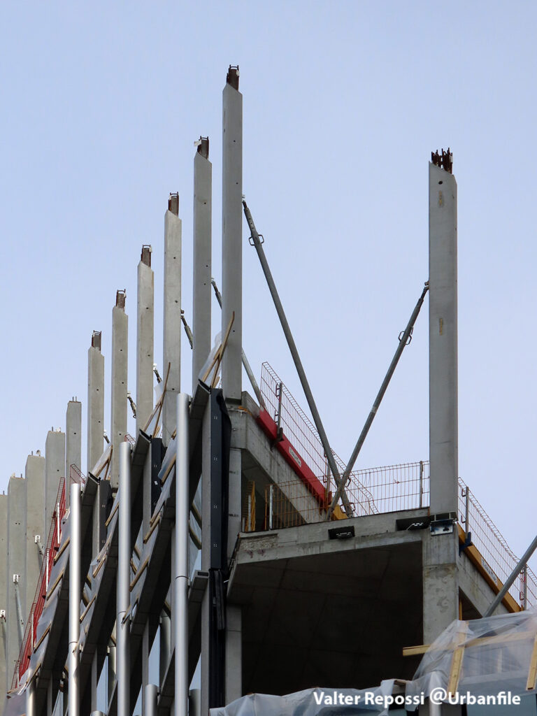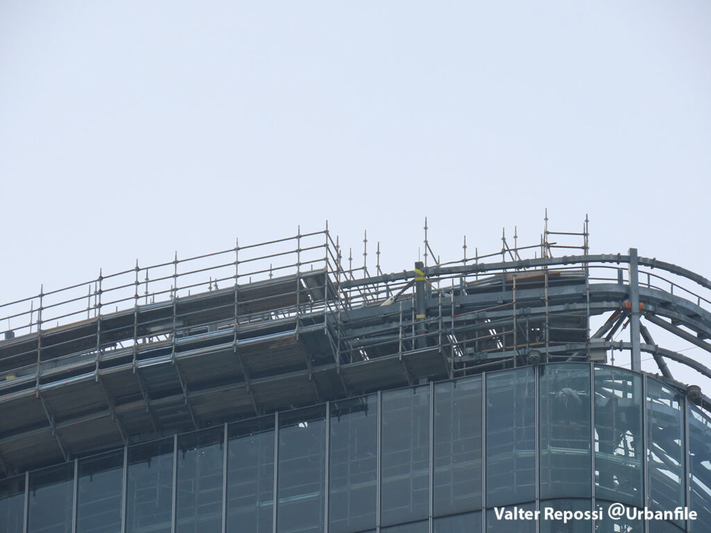 Anche nel cantiere di CityWave proseguono i lavori, oltre al montaggio delle vetrate delle facciate, anche quelli per completare la struttura che servirà a realizzare l’incredibile e complessa tettoia (canopy) che come un “telo” unirà le due torri del nuovo edificio per uffici in realizzazione verso largo Domodossola.