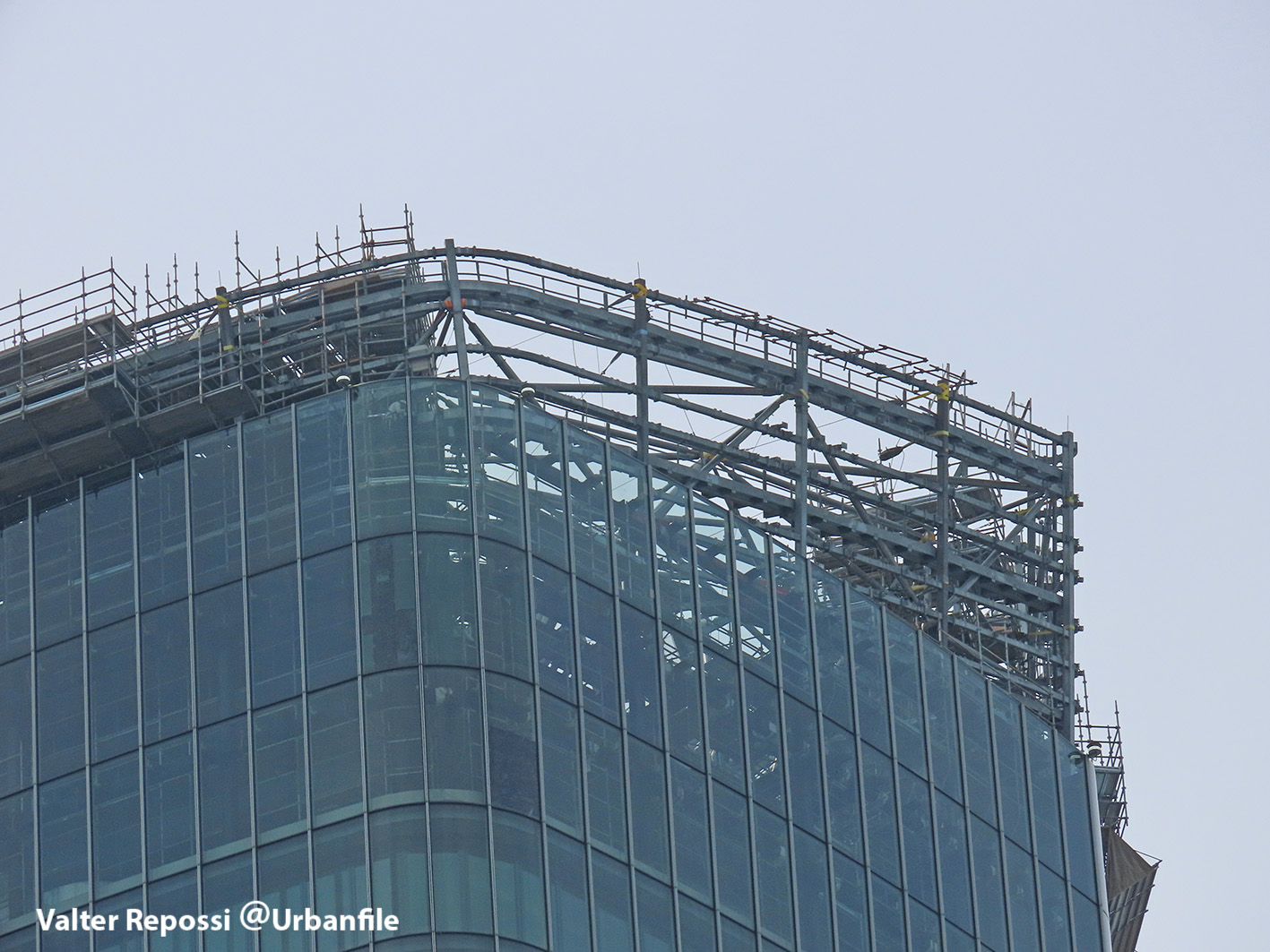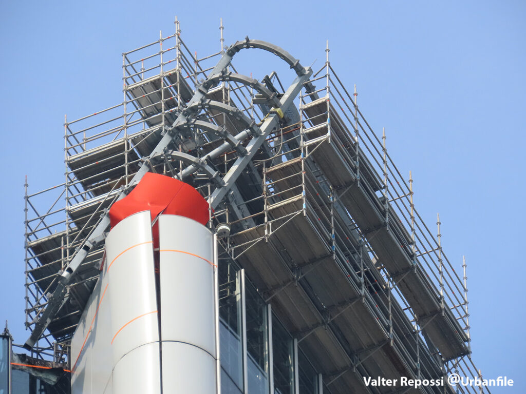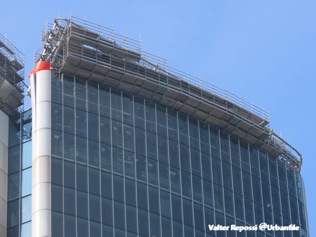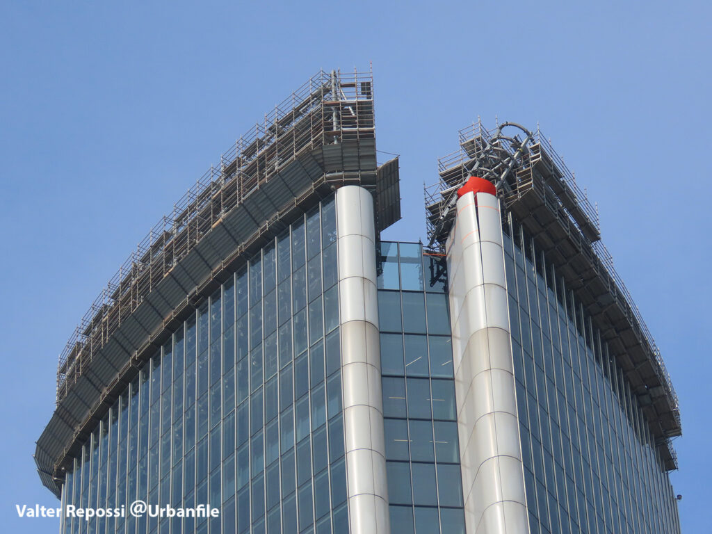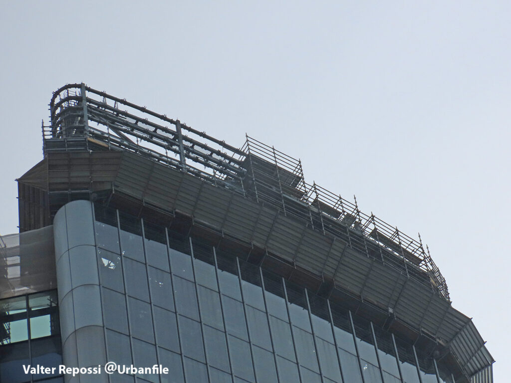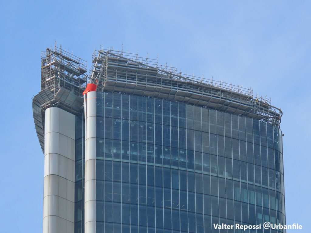 Dopo più di due mesi (era il 30 giugno) dal collasso di parte dell’insegna Generali posta sulla vetta della Torre Hadid — conosciuta anche come Lo Storto — sede del gruppo Generali, i pannelli dell’insegna sono stati completamente rimossi e rimane, per ora, la struttura metallica che lentamente viene smontata. Nel frattempo sono state montate delle impalcature attorno alla struttura posta in sommità.