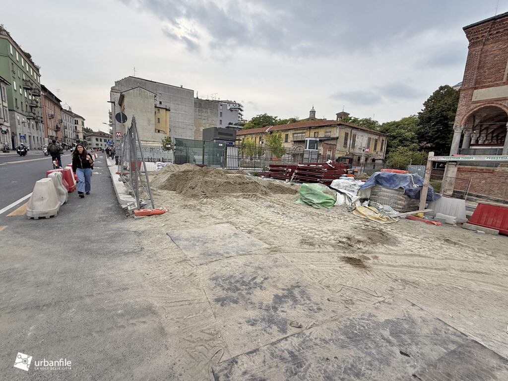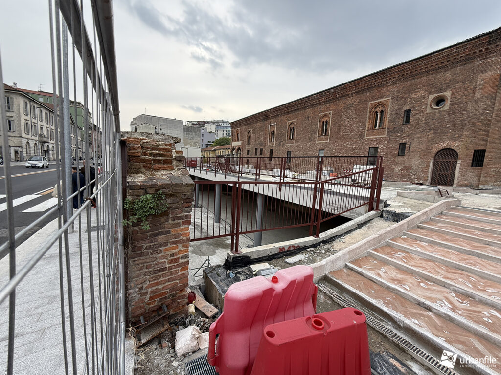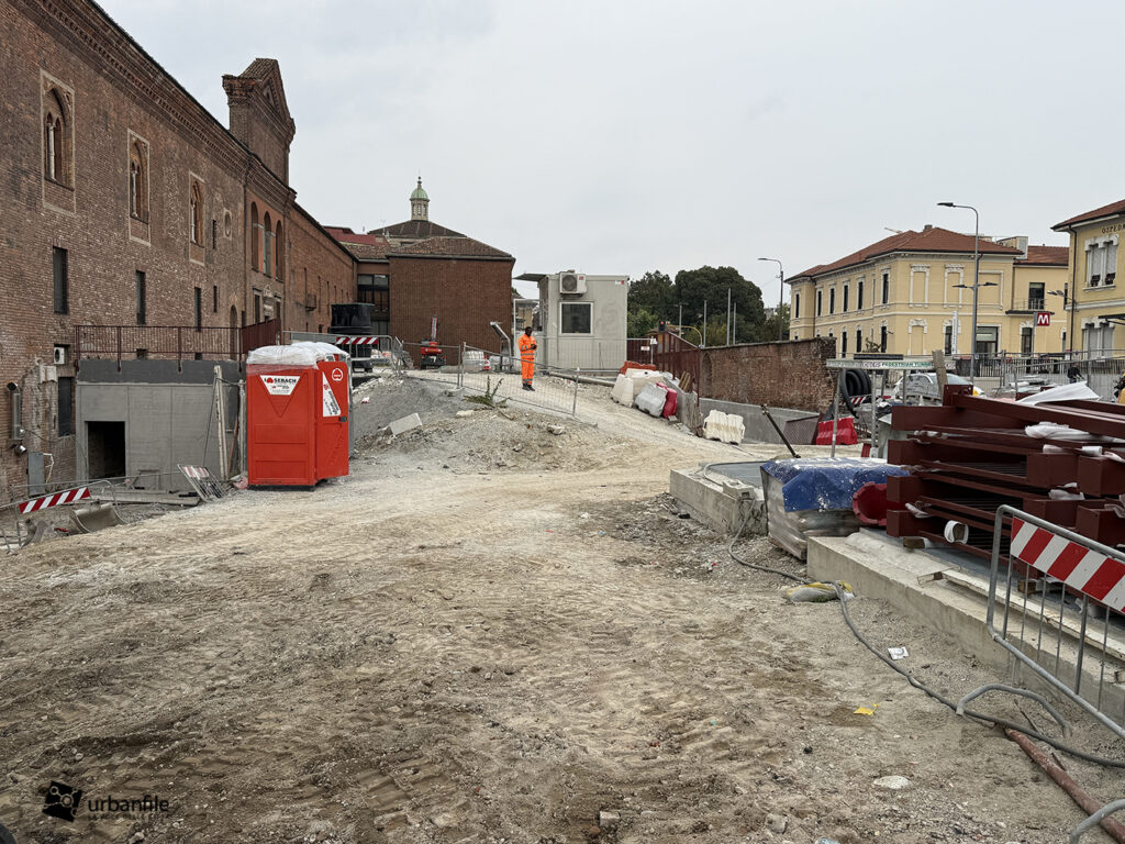 Un aggiornamento dei primi di settembre 2025, dall’area della stazione M4 Sforza Policlinico e del futuro “collegamento agevolato” con la stazione M3 Missori. Ricordiamo per l’ennesima volta che il collegamento sarà realizzato attraverso un percorso pedonale all’aperto che collega le due stazioni, distanti circa 300 metri l’una dall’altra.