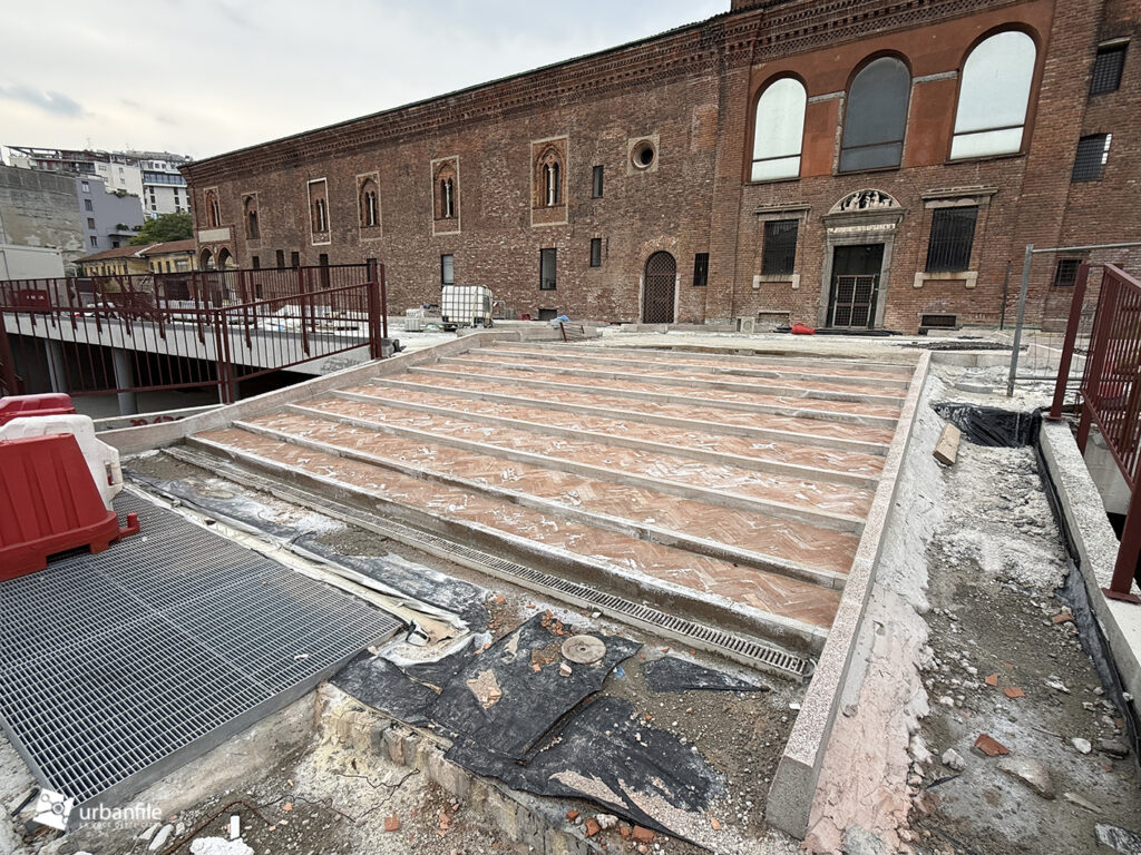 Prosegue il ripristino dell’area di pertinenza dell’Università Statale dove si trova il parcheggio interrato tra il quattrocentesco palazzo della Ca’ Granda e via Sforza.