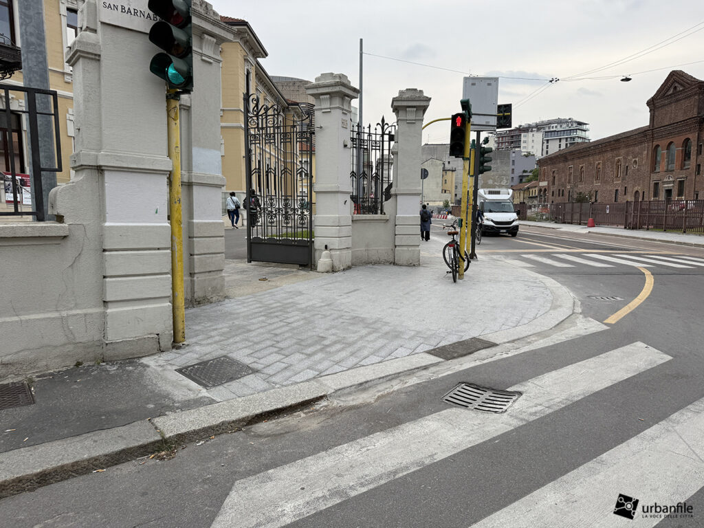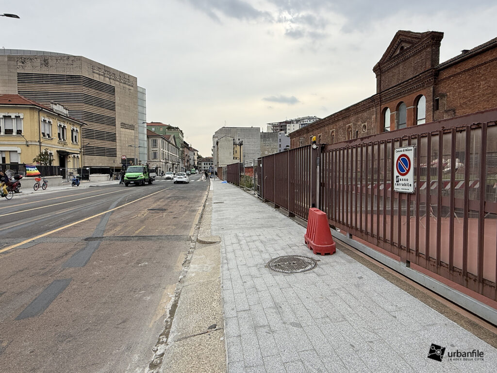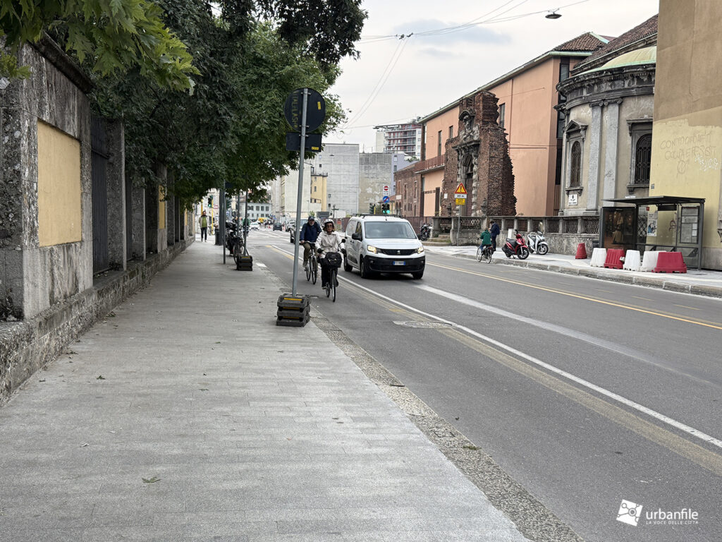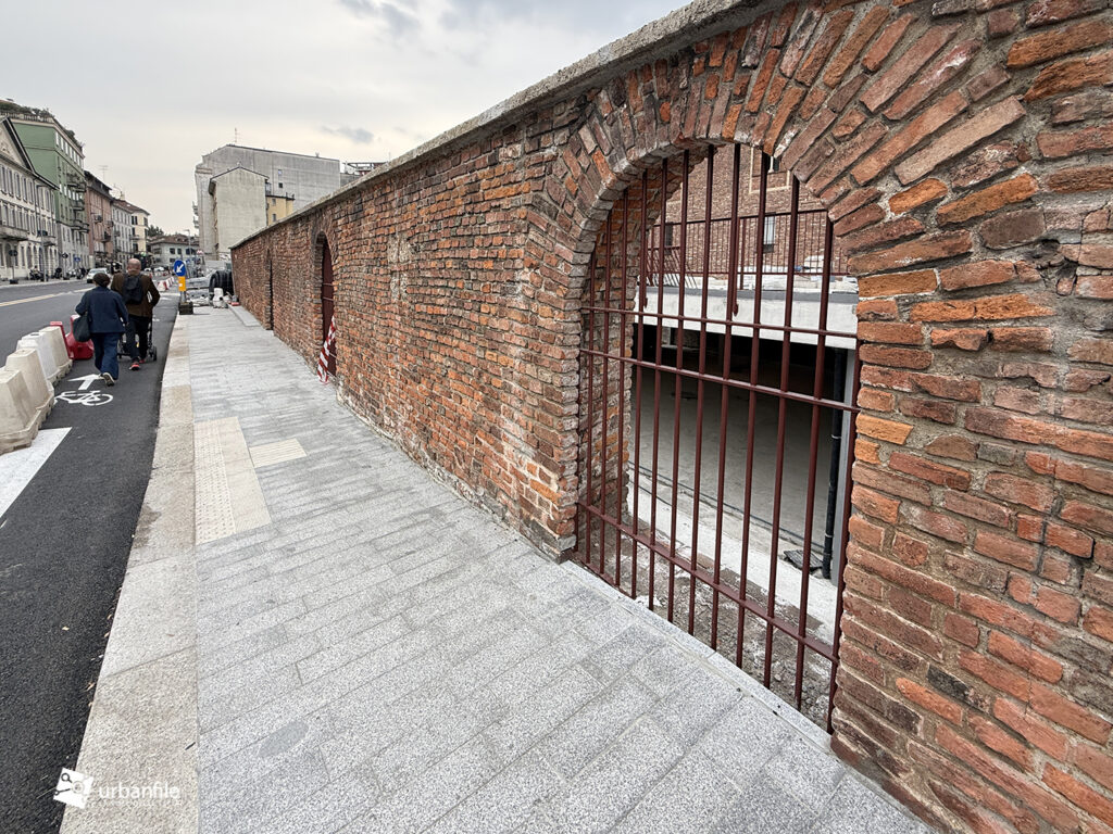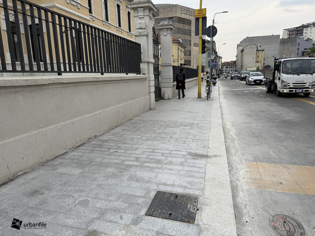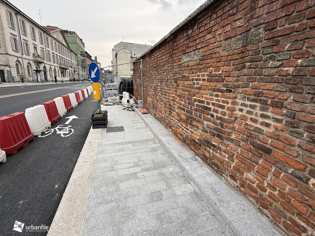 Via Francesco Sforza da via Laghetto a via Paolo Andreani è stata pavimentata con la pietra su entrambi i marciapiedi laterali, questo sino a Corso di Porta Romana.