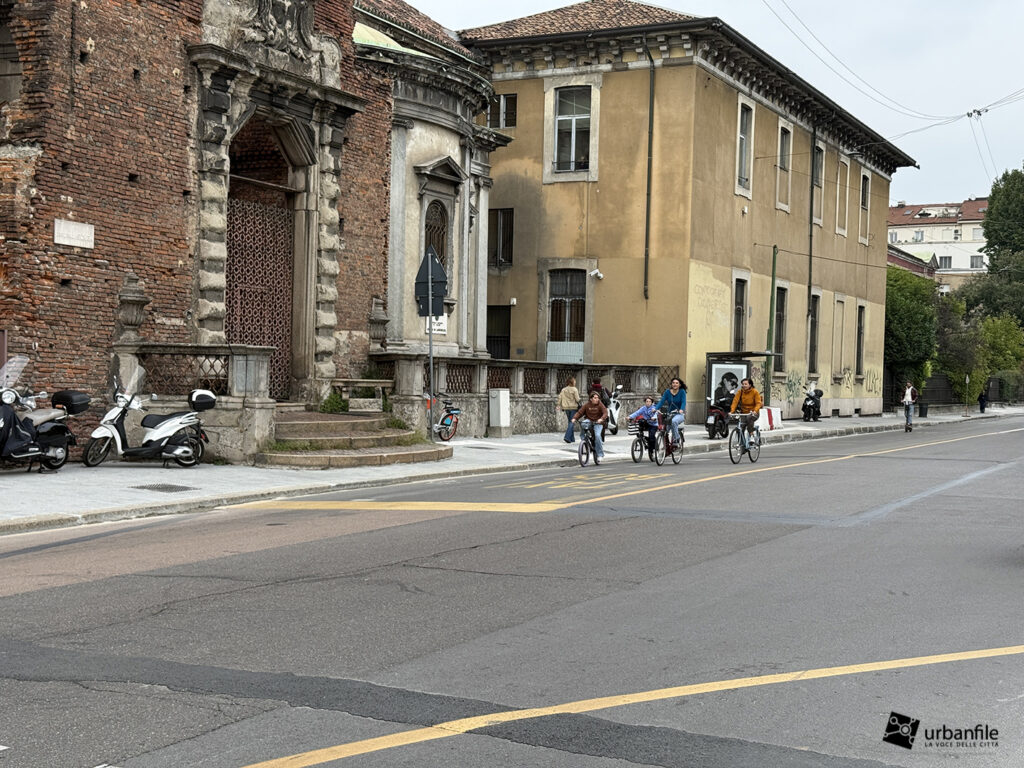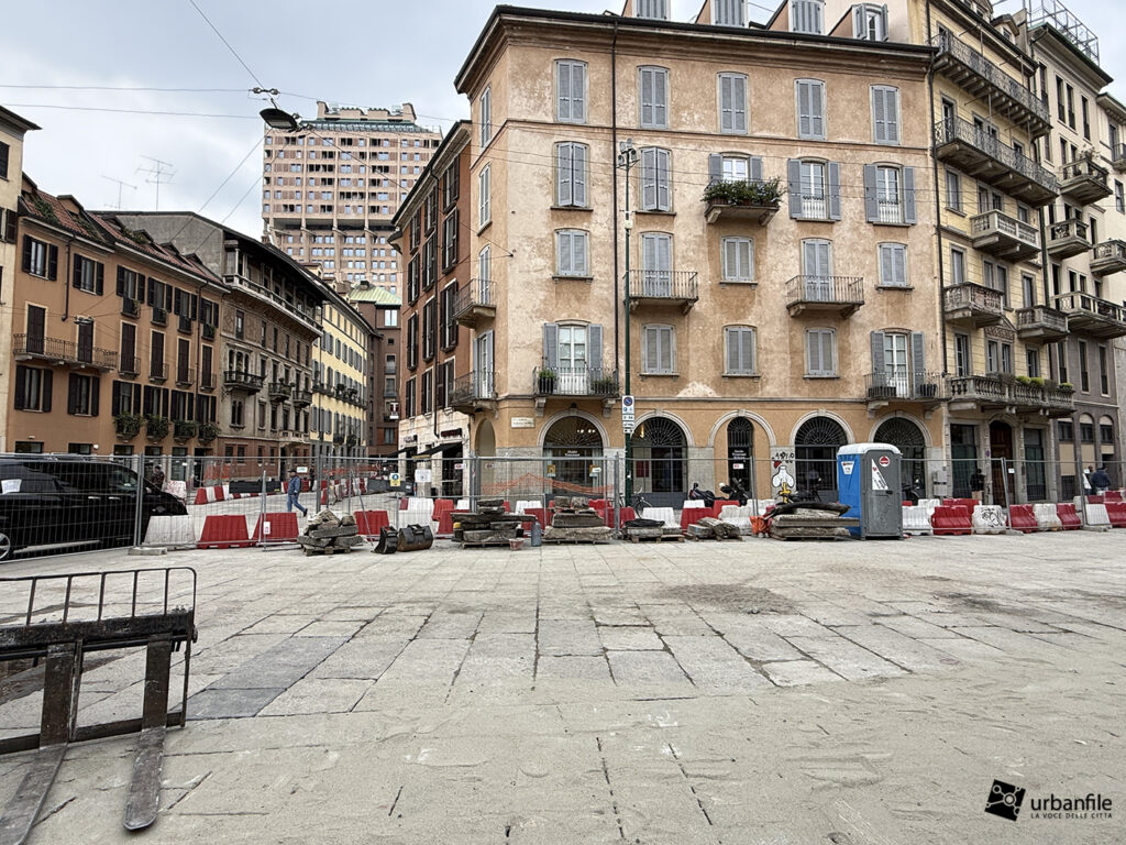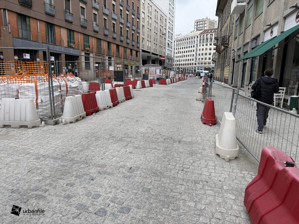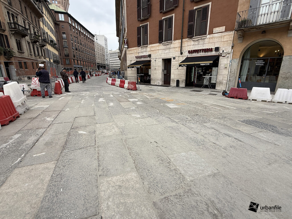 Poi: hanno tolto il pavé da via Meravigli per rendere più sicuro il passaggio di moto e veicoli, e qui, in un’area pedonale, mettono i cubetti di granito. Anche per le bici non è il massimo, per non parlare poi di carrozzine o trolley (a proposito di collegamento M3-M4).