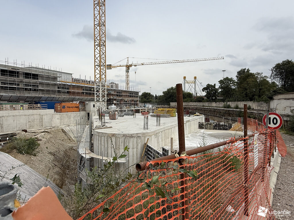 Dopo le bonifiche prosegue il cantiere per la costruzione del nuovo edificio e la riqualificazione della vecchia fabbrica del Gruppo Sandvik (leader mondiale nella fabbricazione di acciai speciali e di macchine ed attrezzature per l’industria estrattiva). Inizia ora a vedersi la struttura “fluida” dei nuovi edifici. Il progetto prevede anche la realizzazione di un parco pubblico in Piazzale Cacciatori delle Alpi, con riqualificazione della stesa piazza.