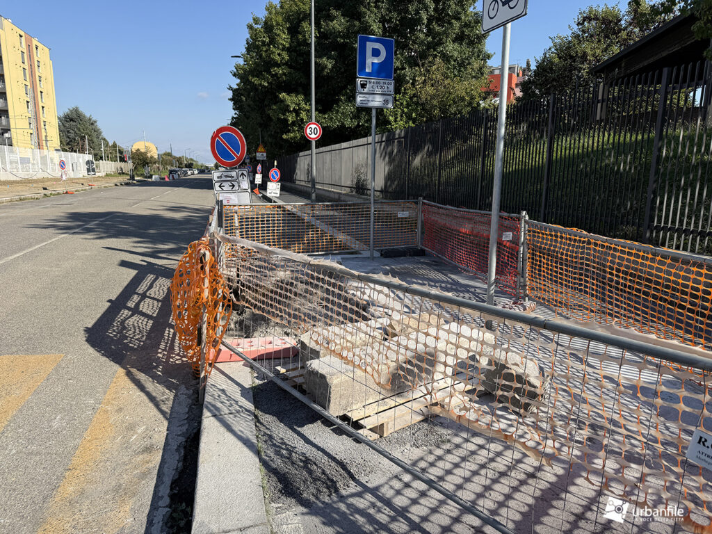 Cominciamo il nostro giretto attorno al cantiere da via Leo Longanesi, dove si stendono le banchine. All’altezza di via Nervesa è in fase di realizzazione il nuovo attraversamento pedonale. Più avanti, davanti al civico 4 è stata creata una nuova piazzetta (con tanto di pavimentazione in pietra). Cantiere che è ormai giunto ad un buon punto.