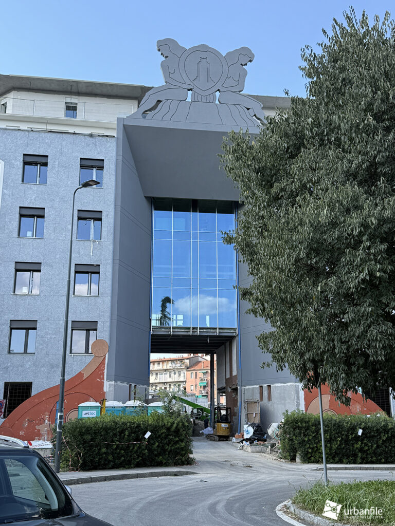 Resto perplesso, forse eliminando quella vetrata che pare a specchio con una assolutamente trasparente e led all’interno migliorerebbe, salvo essere la prospettiva a dare quell’effetto così brutto. Nel complesso non mi entusiasma, l’architettura anni ‘80 boh, ma se si tratta di una memoria storica di rilievo ben venga recuperarla.