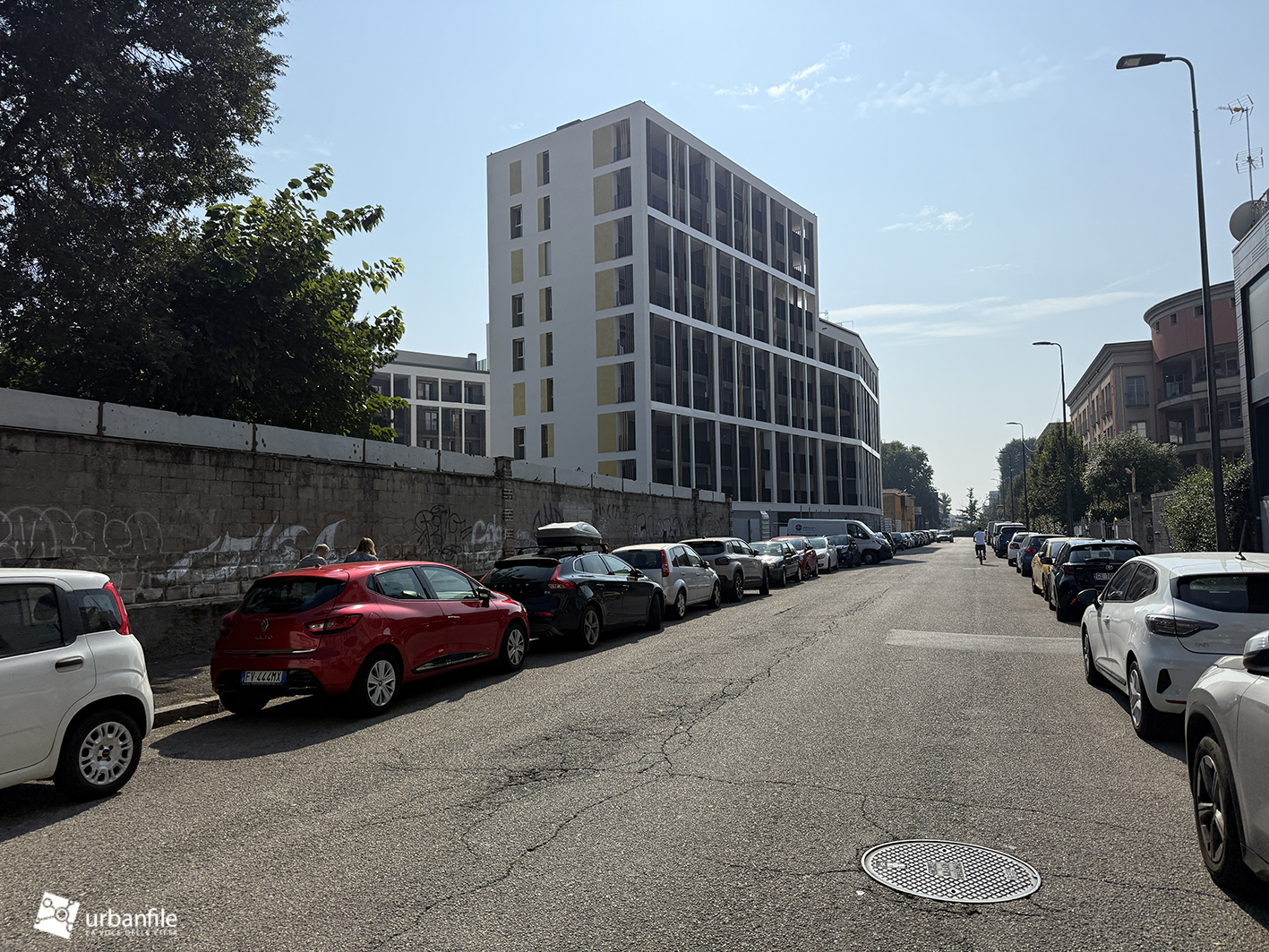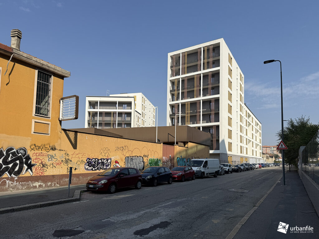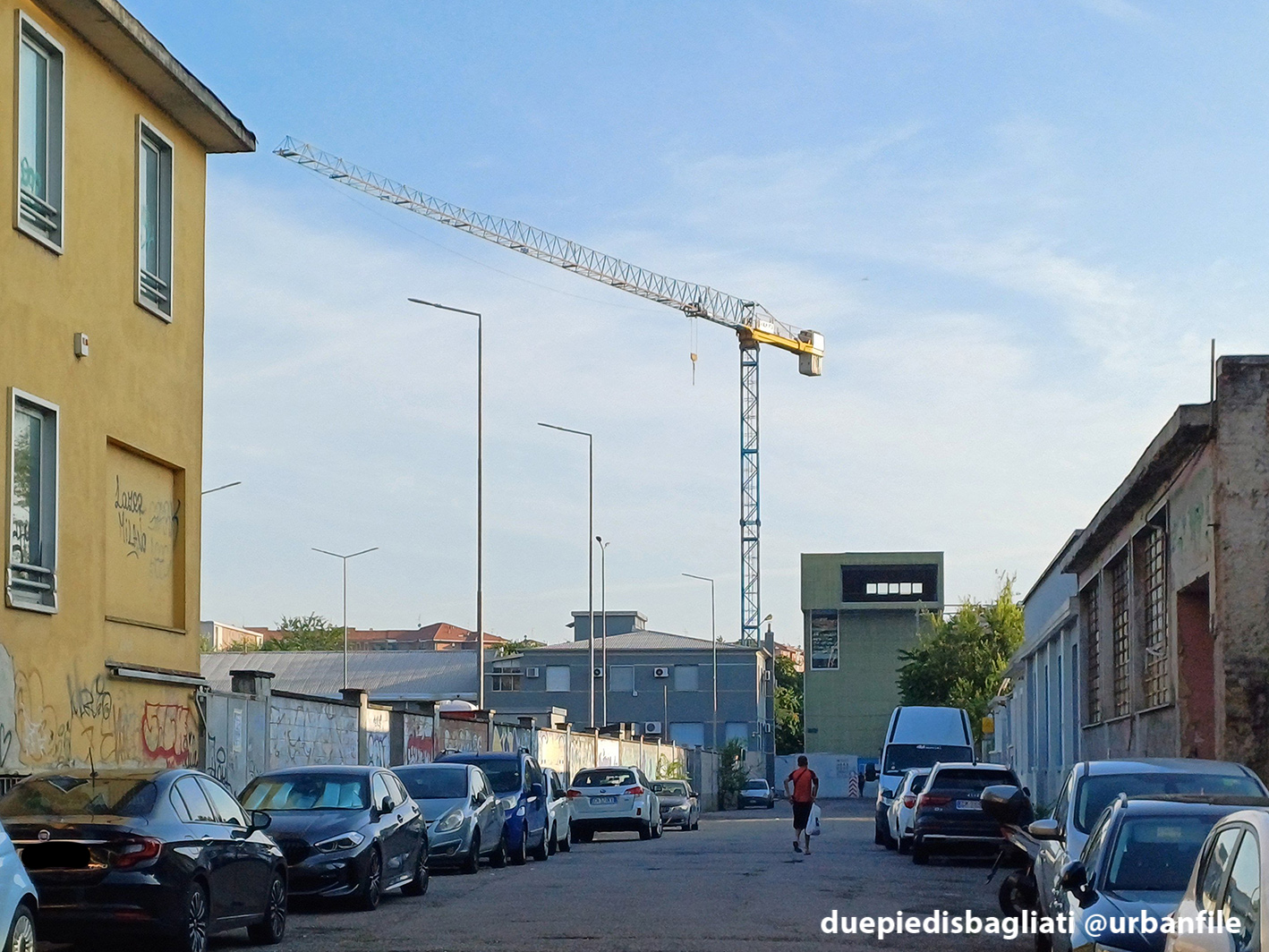 Proseguendo e ritornando verso il nucleo storico di Lambrate, svoltando per via Gaetano Sbodio ci imbattiamo nel cantiere al civico 9 dove i palazzi di Twin Palace sono ormai giunti a compimento, mancano solo pochi particolari.