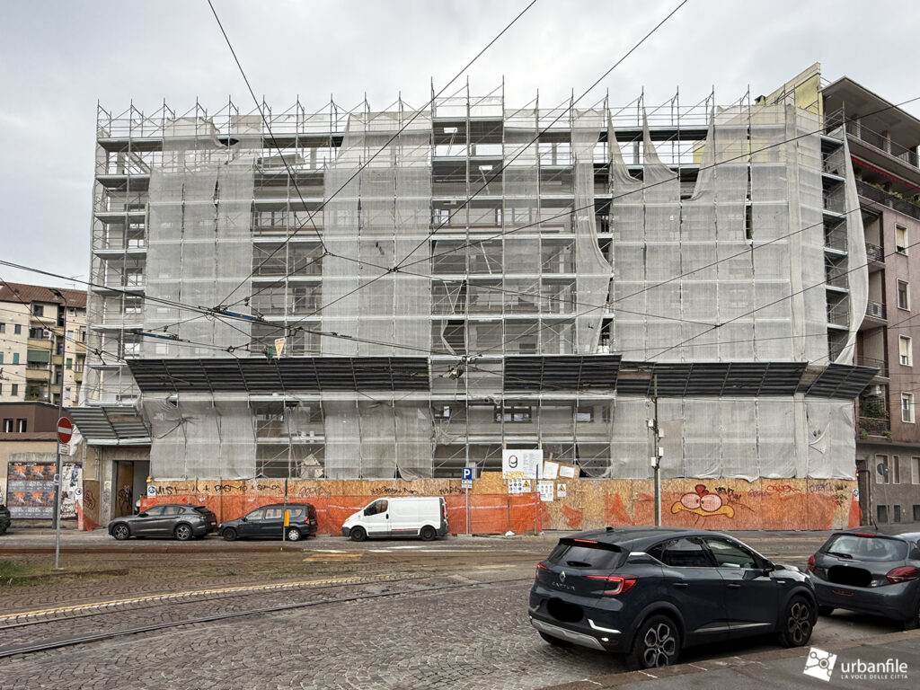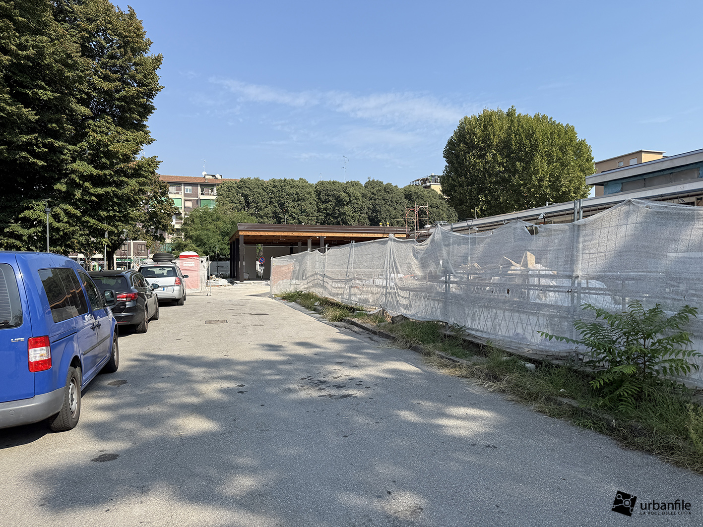 Tornando verso il centro, troviamo sulla sinistra di via Rombon il vecchio mercato coperto in restauro e riqualificazione da parte di Sogemi S.p.A.. A quanto pare dovrebbero aprire lo spazio per il 28 ottobre, anche se ci pare un po’ affrettato…
