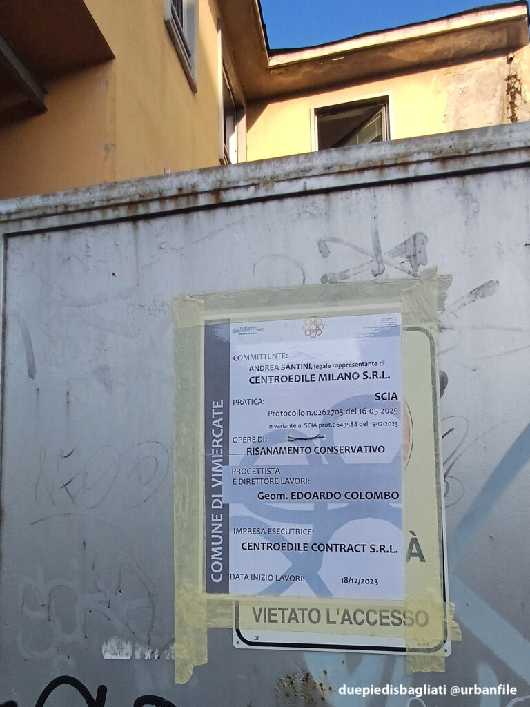 Proseguiamo verso via Rombon, dove sul finire di via Privata Gaetano Sbodio troviamo una manciata di cantieri, alcuni apparentemente in abbandono e altri in fase di ultimazione.