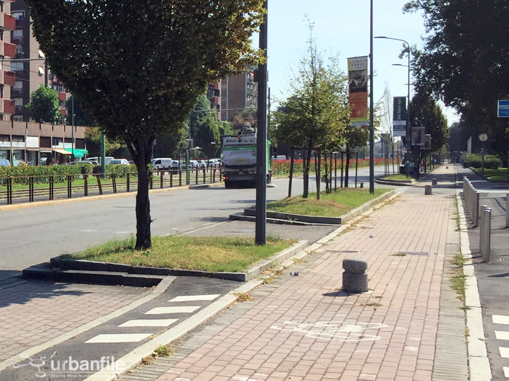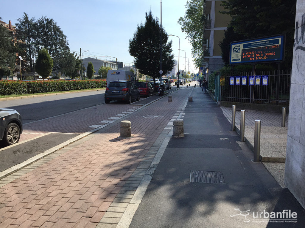 Tra via Bonfadini e via Dione Cassio i parcheggi per le auto restano su entrambi i lati della carreggiata, mentre nel tratto tra via Dione Cassio e piazza Ovidio sono presenti solo sul lato opposto alla ciclabile. All’incrocio tra via Salomone, via Norico e via Quintiliano è stata costruita una nuova rotatoria, che migliora la sicurezza e la fluidità del traffico.